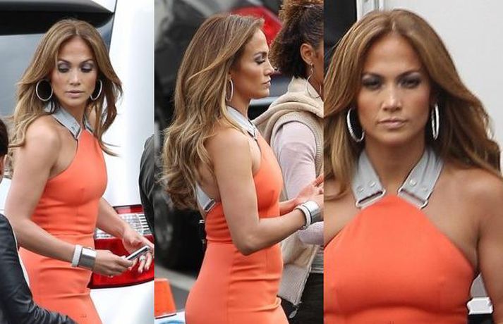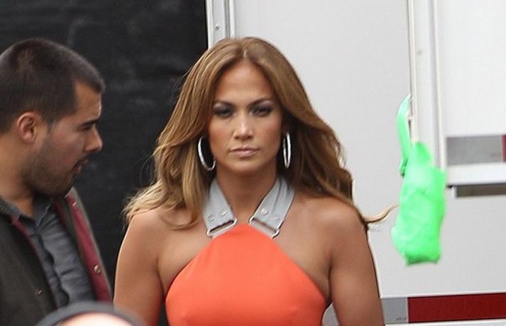 Söng- og leikkonan Jennifer Lopez, 42 ára, var mynduð á American Idol settinu í gær. Eins og sjá má var Jennifer stórglæsileg í orange lituðum kjól sem er greinilega einn heitasti litur sumarsins.„Ég elska hugmyndina að eyða heilum degi upp í rúmi með elskunni minni," lét hún hafa eftir sér.Lífið á Facebook.