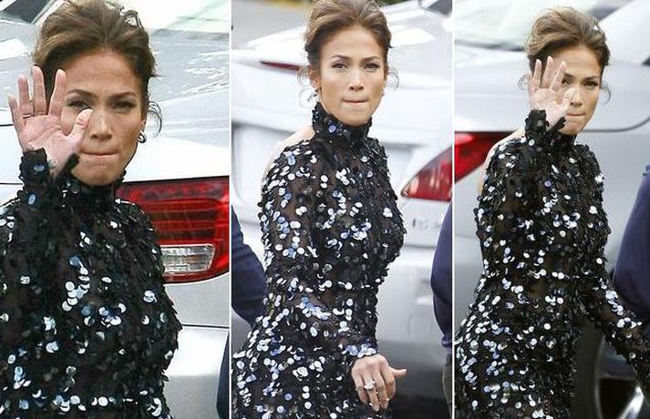 Jennifer Lopez, 42 ára, var klædd í svartan pallíettukjól á tökustað American Idol í gær. Það leikur enginn vafi á því að útlit Jennifer vekur verðskuldaða athygli í hverjum einasta þætti. Í gær var hún stórglæsileg með uppsett hárið eins og sjá má í myndasafni. American Idol er á dagskrá Stöðvar 2 í kvöld klukkan 20:10. Sjá nánar Stöd2.is.