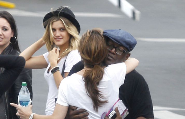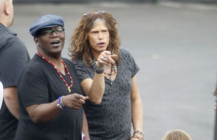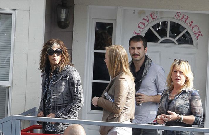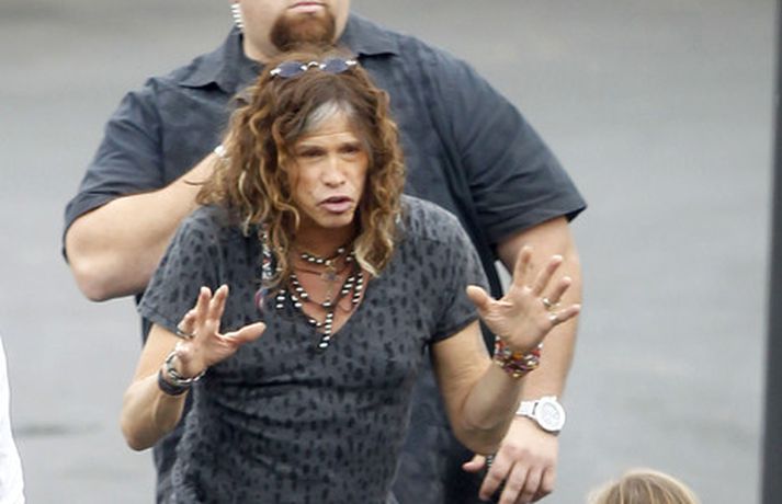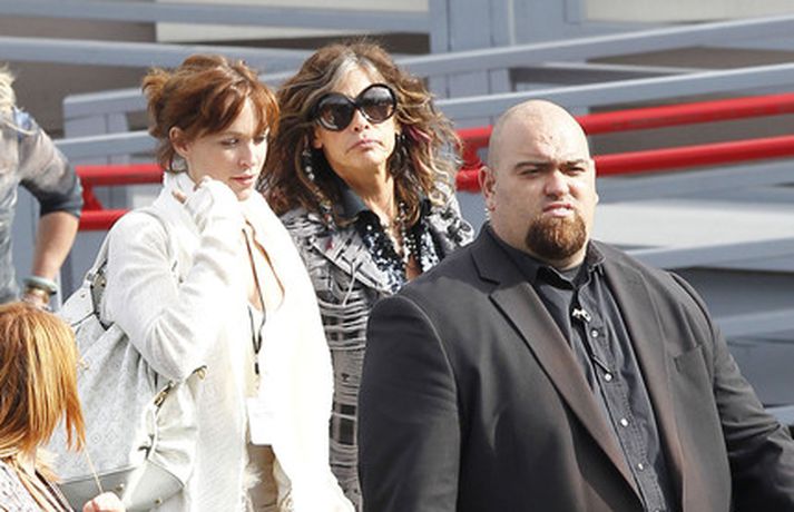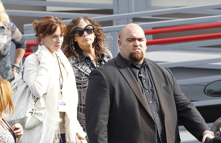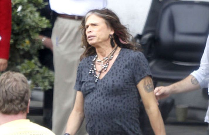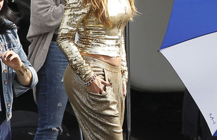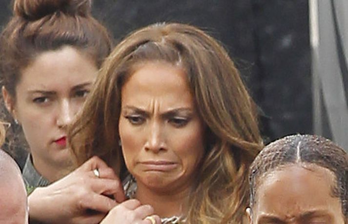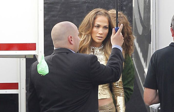 Söng- og leikkonan Jennifer Lopez var mynduð á tökustað American Idol í gær. Jennifer var glæsileg eins og ávallt klædd í gylltan topp og buxur og skó í sama lit. Dómararnir Randy Jackson og Steven Tyler voru einnig á staðnum eins og sjá má í myndasafni.