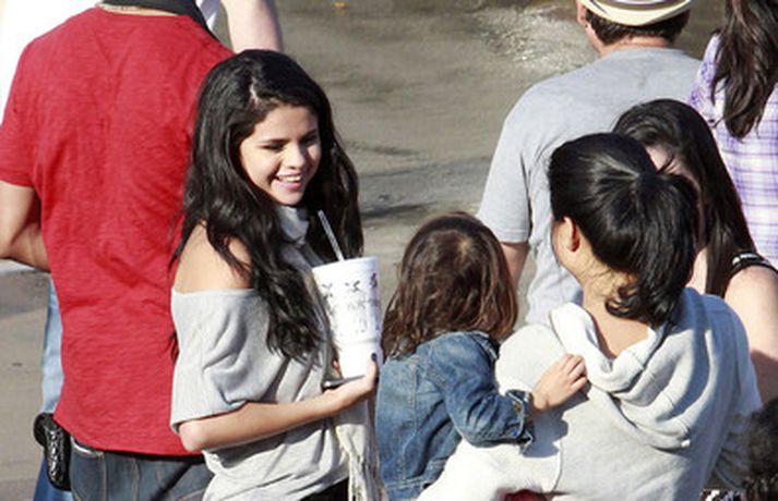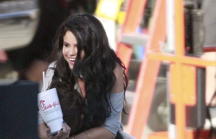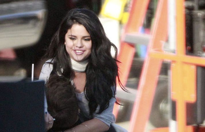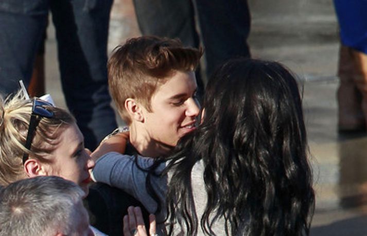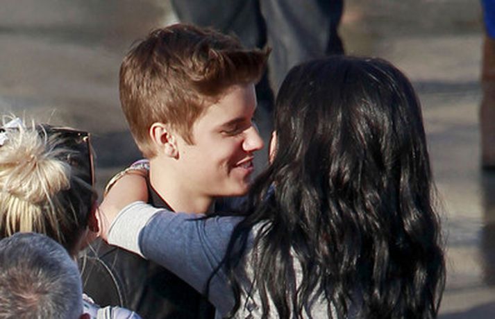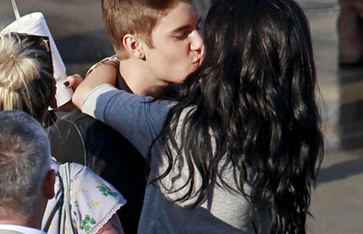 Kærustuparið Justin Bieber og Selena Gomez voru ófeimin við að tjá tilfinningar sínar er Gomez heimsótti Bieber á tökustað við gerð nýja tónlistarmyndbandsins, Boyfriend. Þau eyddu dágóðum tíma saman, kysstust, föðmuðust og hlustuðu á tónlist í Range Rover bifreið hans þar sem hún sat í fanginu á honum. Sjá má fleiri myndir af ástfangna parinu í myndasafni.