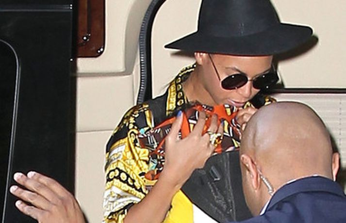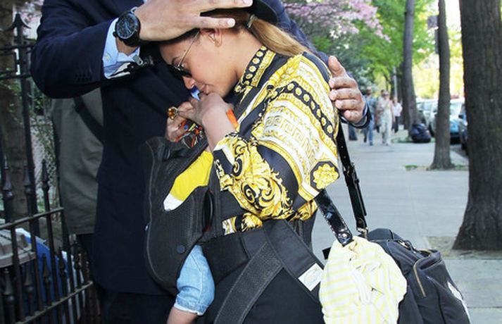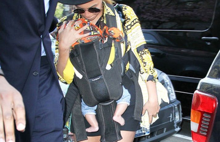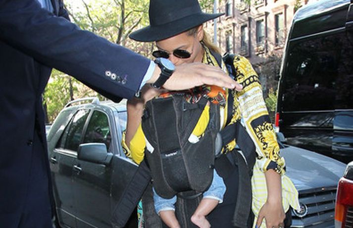 Ein frægasta mamma heims um þessar mundir og stórstjarnan Beyonce hélt þéttings fast utan um dóttur sína Blue Ivy er þær kíktu til Brooklyn á dögunum. Mæðgurnar voru eltar af æstum ljósmyndurum hvert skref en nokkrir stórir og stæðilegir lífverðir sáu til þess að mæðgurnar væru öruggar. Beyonce er annt um öryggi dóttur sinnar og hefur hvergi sést meða hana nema í fylgd lífvarða. Söngkonan var sumarleg og sæt í stuttbuxum og fallegri blússu, með sólgleraugu og flottan hatt.