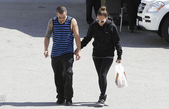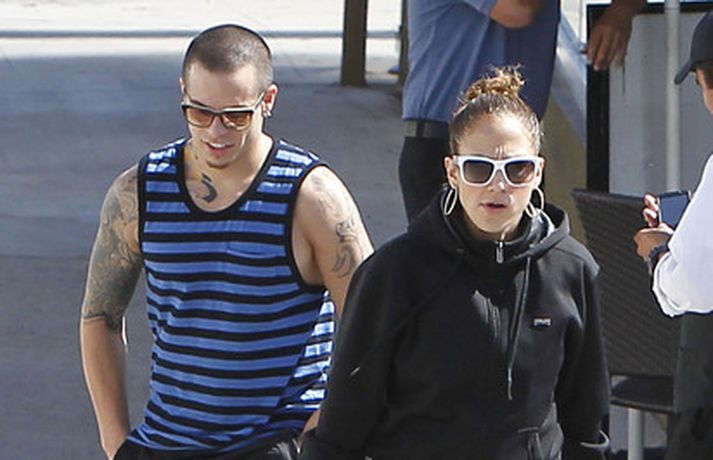 Jennifer Lopez hefur svo sannarlega verið áberandi undanfarið sem dómari í þáttunum American Idol, ekki síst fyrir áberandi fataval sitt og himinháa hæla. Það kom því skemmtilega á óvart þegar J. L sást afslöppuð með kærastanum, Casper Smart um helgina, klædd þægilegum fatnaði og lágbotna strigaskóm eins og sjá má í myndasafni.