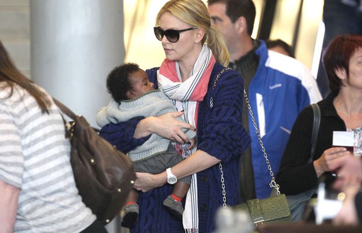 Leikkonan Charlize Theron, 36 ára, heldur á syni sínum Jackson á LAX flugvellinum í Los Angeles á mánudaginn. Hún ættleiddi drenginn sem er algjört krútt eins og sjá má í myndasafni. Hann er yndislegasta barn í heimi. Ég hef alltaf verið hreinskilin um að ég þrái fjölskyldu, lét Charlize hafa eftir sér í breska tímaritinu Vogue nokkrum vikum eftir að hún ættleiddi Jackson. Meðfylgjandi má skoða fyrstu myndirnar sem birtust af Charlize og syni hennar.