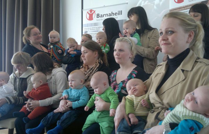 Katrín Júlíusdóttir iðnaðarráðherra og Bjarni Bjarnason eiginmaður hennar mættu með tvíburana sína á fund Barnaheilla - Save the Children þegar skýrsla samtakanna um stöðu mæðra í heiminum 2012 var kynnt í morgun. Katrín er sem kunnugt er í barneignaleyfi. Hún varð önnur ráðherra til þess að eignast barn, en nafna hennar Katrín Jakobsdóttir, mennta- og menningarmálaráðherra, ól barn í júní í fyrra. Samkvæmt skýrslu barnaheilla er best að vera móðir á Norðurlöndunum. Norskar mæður hafa það best, en íslenskar mæður eru í öðru sæti. Tvíburarnir verða í fyrsta sinn í sjónvarpsviðtali í kvöld, sagði Katrín þegar fréttamaður náði af henni tali á fundinum. Í viðtali við fréttamann hældi hún mæðraeftirliti og þeim aðbúnaði sem ófrískar konur búa við á Íslandi. Í meðfylgjandi myndaalbúmum getur þú séð myndir sem Valgarður Gíslason og Sigurjón Ólason myndatökumenn hjá 365 miðlum tóku.