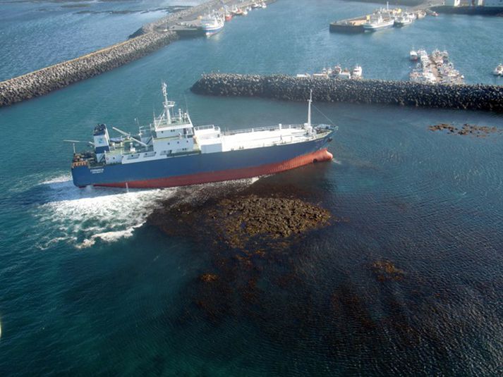 Strand Fernanda í myndum 5. maí 2012 15:16 mynd/Landhelgisgæslan Þyrla Landhelgisgæslunnar náði þessum myndum af strandstað flutningskipsins Fernanda í innsiglingunni í Sandgerði fyrr í dag. Samkvæmt upplýsingum frá aðgerðarstjórn Landhelgisgæslunnar í Skógarhlíð er nú beðið eftir að dráttarbáturinn Magni komi frá Reykjavík en hann mun verða til aðstoðar og styðja við skipið þegar það reynir að losna af strandstaðnum á háflóði. Þá er reiknað með að háflóð verði milli klukkan 17:00 og 18:00. Stýrimaður frá Landhelgisgæslunni og lögreglan eru um borð í skipinu og hafa tekið skýrslu af skipstjóranum. Einnig er varðskipið Þór á staðnum og er til taks ef á þarf að halda. Fernanda/J7AM7 er skráð í Dóminíska lýðveldinu. Skipið missti af beygju þegar það sigldi með lóð inn í höfnina snemma í morgun.mynd/Landhelgisgæslan Tengdar fréttir Skipstjórinn mun reyna að losa skipið Skipstjóri flutningaskipsins Fernanda/J7AM7 mun sjálfur reyna að ná skipinu af strandstað á háflóði síðar í dag. Áhöfn varðskipsins Þórs hefur nú rætt við áhöfn Fernanda og mun varðskipið vera áfram á staðnum og kemur til aðstoðar ef þörf krefur. 5. maí 2012 11:40 Erlent flutningaskip strandaði við Sandgerði Erlent flutningaskip strandaði við Sandgerðishöfn í morgun. Skipið heitir Fernanda/J7AM7 og er skráð í Dóminíska lýðveldinu. 5. maí 2012 09:14 Mest lesið Virðist skipta máli hvaða stöðu fólk gegni Innlent Sömdu um reglulegar samfarir í ár eftir sambúðarslit Innlent Sektuð um 23 þúsund krónur vegna tréspíramálsins Erlent ICE dregur saman seglin í Minneapolis Erlent „Sprengjuflugvélar er ógnin sem við sjáum hér“ Innlent Viðbrögð Ölmu mikil vonbrigði Innlent „Eins og við séum komin aftur á 1. mars 1989“ Innlent Skoða að leigja hótel til að létta undir með bráðamóttökunni Innlent Ósammála um að það sé kostur að vera formaður utan þings Innlent Segir Jóhann Pál genginn í Epstein-björg Innlent Fleiri fréttir Virðist skipta máli hvaða stöðu fólk gegni Ósammála um að það sé kostur að vera formaður utan þings Tengslanet veikara og andleg líðan verri í dag en fyrir rýmingu „Sprengjuflugvélar er ógnin sem við sjáum hér“ „Eins og við séum komin aftur á 1. mars 1989“ Vinnur fallega muni úr íslenskum trjám ASÍ og SA telja stjórnvöld á villigötum Jákvæð skref hafi verið tekin í vinnuhópi um málefni Grænlands Forstjóri í beinni, herþotur og bjór á vellinum Stúlkan er fundin Skoða að leigja hótel til að létta undir með bráðamóttökunni Ingibjörg fljót að rífa upp boxhanskana Hækkuðu gjaldið í skugga stúdentamótmæla Bjórinn nú leyfður á vellinum Íhugar að bjóða fram til varaformanns Sömdu um reglulegar samfarir í ár eftir sambúðarslit Lýsa eftir bíl sem var stolið fyrir utan Landspítalann Rafmagnslaust á Siglufirði Ríkisfjármálaleg tímasprengja, mistök eða tímabært réttlætismál? Átta ára dómur Sigurðar Ragnars staðfestur Vísbendingar um gerviverktöku í geiranum Hálf-íslenskur hermaður hluti af sænsku herflugsveitinni Mikið svifryk þrátt fyrir rykbindingu Blikkuðu í klukkustundir vegna skaddaðs jarðstrengs Samtök atvinnulífsins höfðu betur í Félagsdómi Fékk „hjálp“ frá heilbrigðiseftirlitinu til að velja sig sjálfa Baráttan um formannsembætti Framsóknar Viðbrögð Ölmu mikil vonbrigði Lýsa miklum vonbrigðum með viðbrögð Ölmu Vilja ráðast í breytingar á gamla bandaríska sendiráðinu Sjá meira