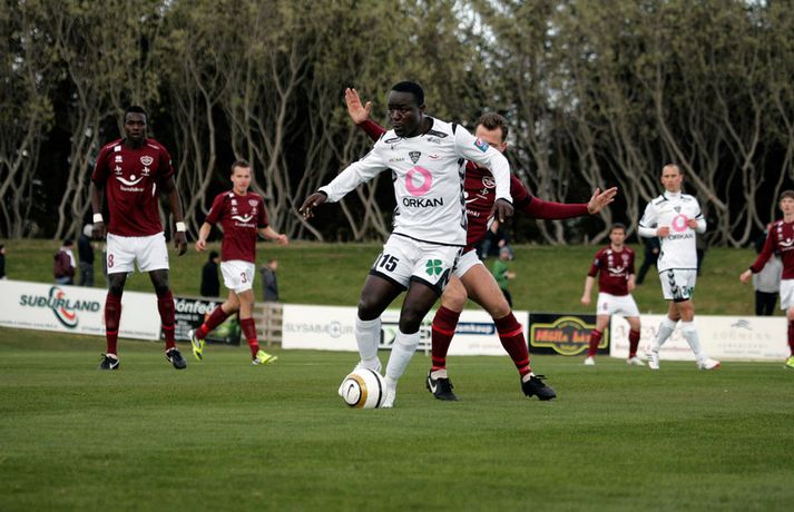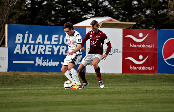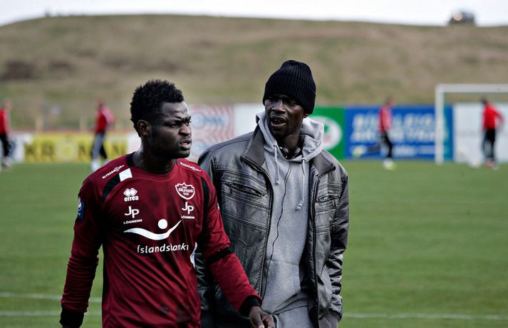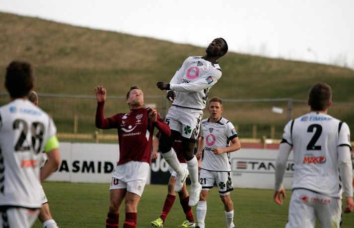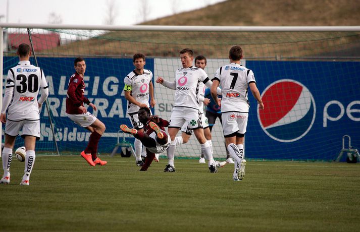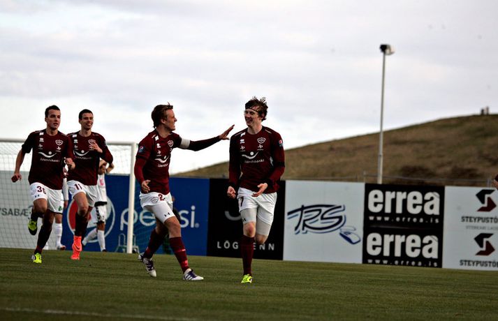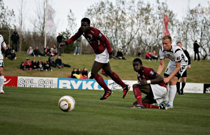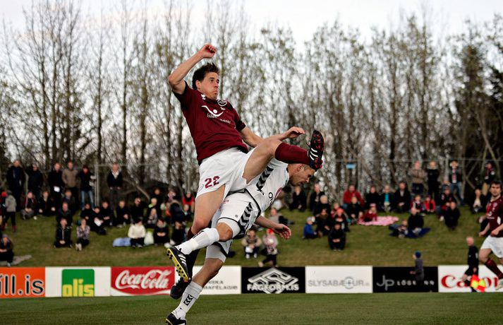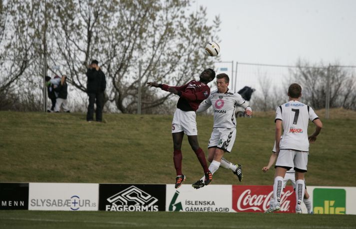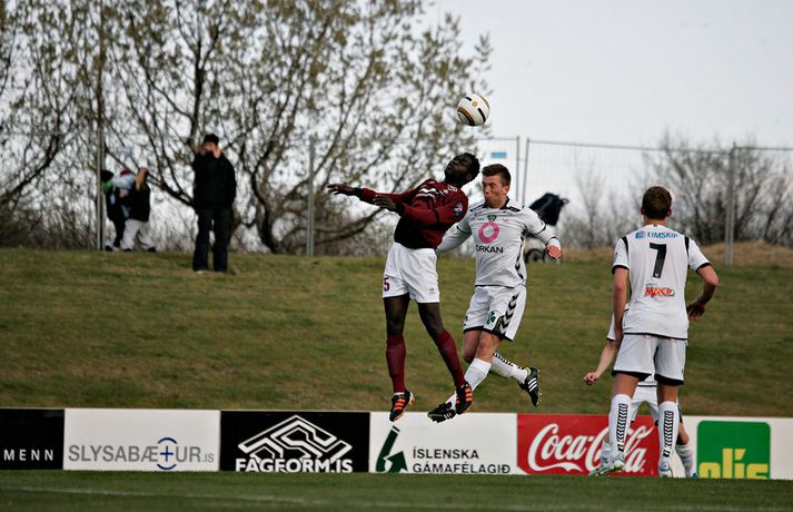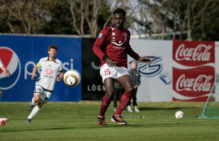 Ingólfur Þórarinsson, betur þekktur sem Ingó Veðurguð, stjórnaði miðjunni hjá Selfyssingum í kvöld þegar fyrsti leikur Pepsi-deildarinnar í ár fór fram. Ingó stýrði sínum mönnum til 2-1 sigurs á óslípuðum Eyjamönnum. ÍBV mætti varla til leiks í fyrri hálfleik - voru enn í Herjólfi - og voru 2-0 undir í að honum loknum. Ólafur Karl Finsen skoraði mark úr víti strax á fimmtu mínútu og Jón Daði Böðvarsson bætti öðru marki um miðbik hálfleiksins. Selfyssingar í bullandi stuði í fyrri hálfleik þar sem téður Ingólfur og Babacar Sarr stjórnuðu umferðinni. Síðari hálfleikur fór í langar spyrnur og minna fjör þó menn tækjust hressilega á en Þórarinn Ingi Valdimarsson minnkaði muninn með marki úr víti. Boltinn fór þá í hendina á Endre Brenne og víti dæmt. Lengra komust Eyjamenn ekki og Selfyssingar fögnuðu vel og innilega með Ingólf í fararbroddi þó lagið Hugarró hafi fengið að hljóma eftir leik. Það verður líklega lagað fyrir næsta heimaleik.Ingólfur: Veit ekki á hverju menn byggja þessar spár „Heilt yfir vorum við bara nokkuð ánægðir með þennan sigur," sagði Ingólfur Þórarinsson en hann átti stjörnuleik á miðjunni í kvöld. „Það var ágætis spil í okkar liði en við hefðum kannski þurft að vera rólegri í byrjun á boltanum. Vorum, kannski eðlilega, nokkuð stressaðir og kýldum boltanum langt fram en það spilast á reynsluleysi." Selfyssingum var spáð neðsta sæti deildarinnar í flestum fjölmiðlum. „Ég veit ekki alveg á hverju menn byggja þessa spár. Við erum með fínt lið og erum sterkir þegar við þorum að spila boltanum - þá erum við til alls líklegir," sagði Ingólfur með sínu fallega brosi.Magnús: Leikmenn ekki í agabanni „Við mættum ekki klárir til leiks," sagði Magnús Gylfason, þjálfari ÍBV, eftir leikinn. „Við fengum á okkur víti en mér fannst að það átti að dæma á þá fyrir bakhrindingu. Við gerðum svo klaufaleg mistök í seinna markinu - barnaleg mistök í rauninni og gefum það mark," bætti hann við. „Við reyndum að spila fótbolta en við vorum ekki nógu klárir og því fór sem fór." Tryggvi Guðmundsson er ekki nálægt liðinu en er samt umtalaðasti fótboltamaður landsins eftir að hann var handtekinn ölvaður bak við stýri. Hann er nú í meðferð. Magnús sagði að umræðan um mál Tryggva hafði ekkert með þennan leik að gera. „Nei það held ég ekki. Hann á við sín mál í dag og við vorum ekki að hugsa um það. Það sem fór með þennan leik var að við vorum ekki klárir í upphafi." Magnús neitaði einnig að ÍBV leikmenn hefðu fengið sér í tánna á fimmtudag eins og vísir hefur heimildir fyrir og hefðu verið settir í agabann. „Það var ekkert svoleiðis. Við mættum með 18 í dag og ég treysti þeim fyrir þessum leik."