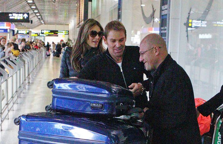 Fyrirsætan og leikkonan Elizabeth Hurley sást sækja dætur unnusta síns og íþróttarmannsins Shane Warne í gær. Síðar sama dag var hún komin á flugvöllinn með Shane þar sem leið þeirra lá til Ástralíu eins og sjá má í myndasafni.