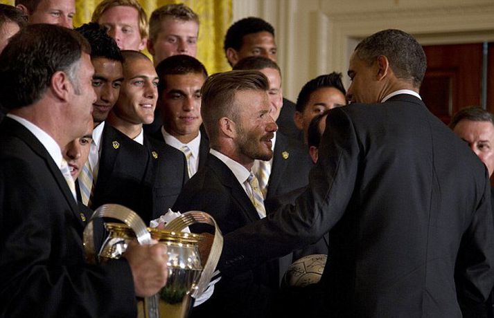 Fótboltamaðurinn David Beckham, 37 ára, og liðið sem hann spilar með, LA Galaxy, mætti uppábúinn með skegg í Hvíta húsið þar sem forseti Bandaríkjanna Barack Obama, 50 ára, tók á móti honum. Fótboltaliðið skoðaði sig um í Hvíta húsinu á sama tíma og því var formlega óskað til hamingju með að sigra MLS deildina í Bandaríkjunum. Skoða má skeggjaðan David betur í myndasafni.