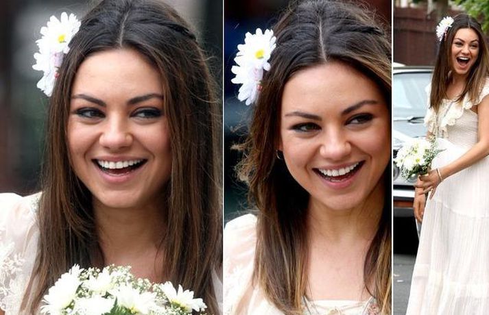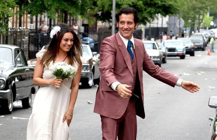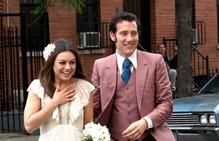 Leikkonan Mila Kunis, 28 ára, og leikarinn Clive Owen, 47 ára, voru mynduð við tökur á kvikmyndinni Blood Ties. Um var að ræða brúðkaupssenu í spennutryllinum sem fram fer í Brooklyn. Eins og sjá má á myndunum var Mila sæt á setti.