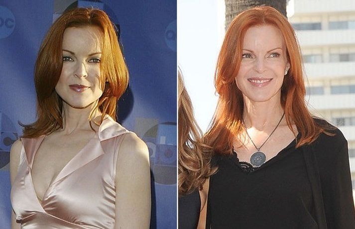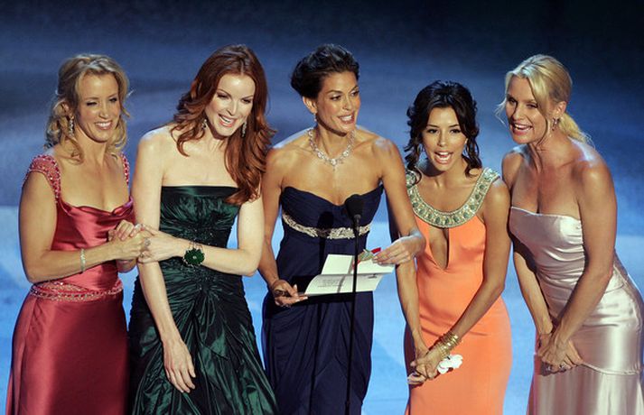 Í meðfylgjandi myndasafni má meðal annars sjá leikkonurnar Felicity Huffman, Marcia Cross, Teri Hatcher, Eva Longoria og Nicollette Sheridan eins og þær líta út í dag og þegar sjónvarpsþættirnir Desperate Housewives hófu göngu sína. Eins og sjá má eldast leikkonunar allar mjög vel.