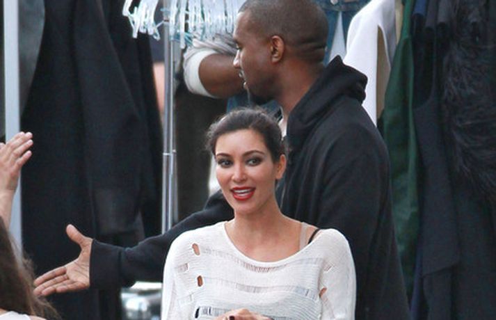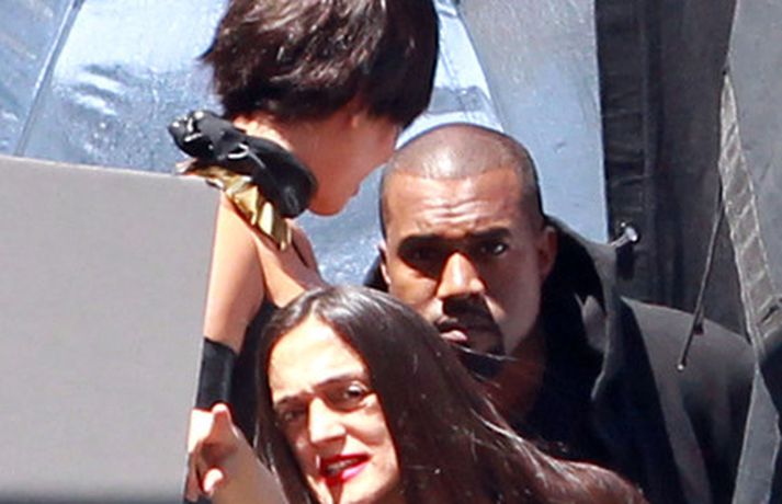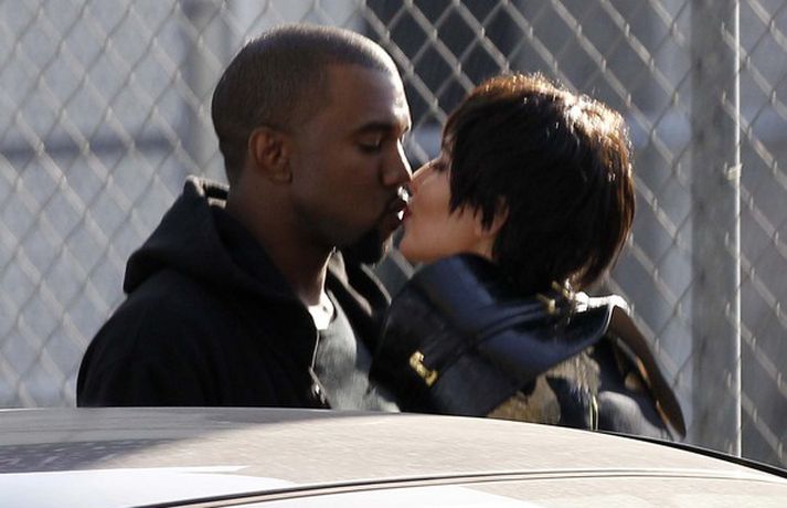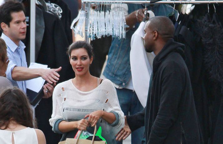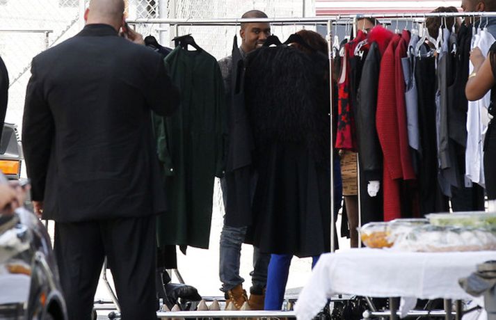 Kim Kardashian er ekki búin að fórna síða fallega hárinu sínu heldur er hún að leika í auglýsingu þegar þessar myndir er teknar af henni á tökustað í vikunni. Eins og sjá má í myndasafni var Kanye West ekki langt undan á meðan Kim var við vinnu. Einnig má sjá parið á körfuboltaleik um helgina þar sem þau skemmtu sér konunglega saman.