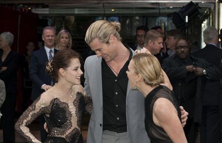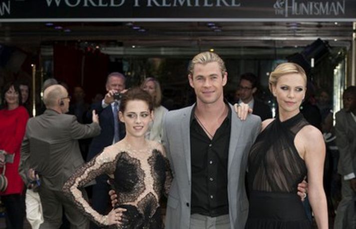 Þau Kristen Stewart, Chris Hemsworth og Charlize Theron voru öll stórglæsileg er þau mættu til frumsýningar á nýjustu mynd sinni, Snow White and The Huntsman í Empire bíóinu í London í gær. Sérstaka athygli vakti kynþokkafullur Dior kjóll Charlize Theron sem sást í gegn um. Leikkonan bar hann afar vel, var með hárið tekið upp og dökka förðun um augun. Eins og sjá má í myndasafni lá vel á leikarahópnum.