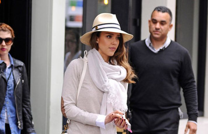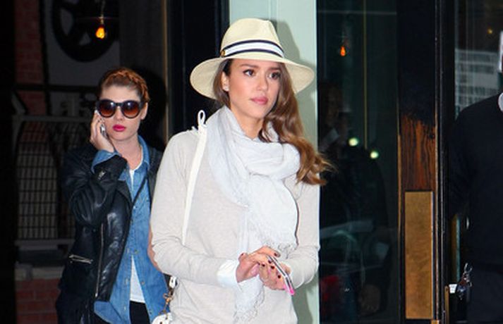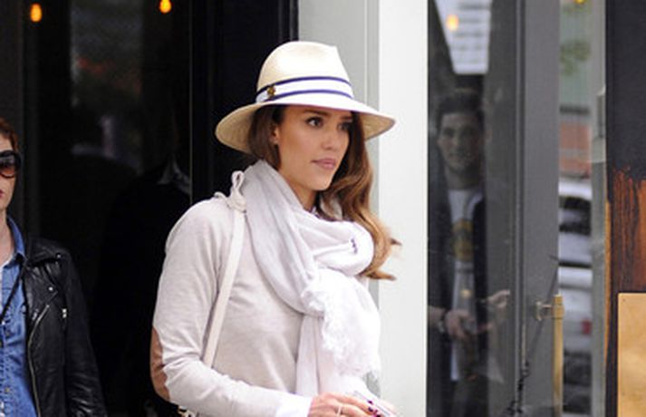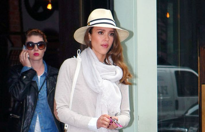 Leikkonan glæsilega, Jessica Alba sást yfirgefa SoHo Grand Hotelið in New York í gær eftir hádegismat með góðum vinum. Alba vakti athygli fyrir glæsilegan fatnað sinn sem var nánast hvítur frá toppi til taár. Hún bar hvíta litinn vel, var með hatt og í háum hælum til að toppa flott útlit sitt.