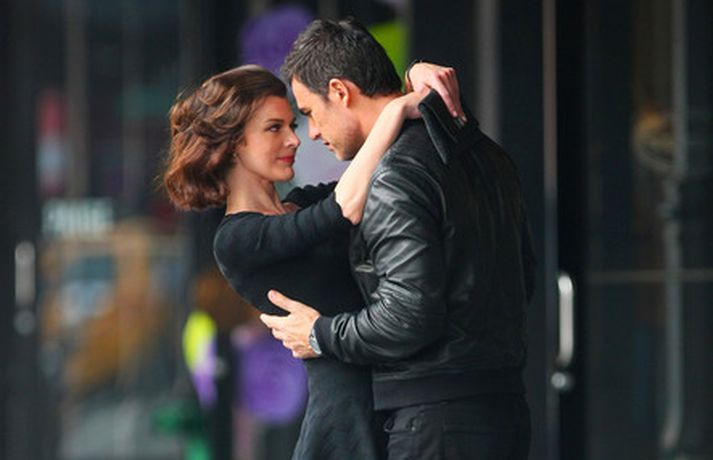 Leikkonan og fyrirsætan Milla Jovovich var mynduð við tökur í New York í gær fyrir Nine West auglýsingu. Hin glæsilega Milla stóð sig vel að vanda en með henni í auglýsingunni var myndarleg karlfyrirsæta eins og sjá má í meðfylgjandi myndasafni.