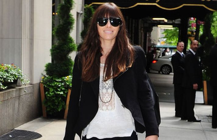 Leikkonan Jessica Biel var mynduð á röltinu um Soho hverfið í New York í gær með vinkonu. Hún var glæsileg og hversdagslega klædd í svörtum leðurstígvélum. Þá var leikkonan alls ekki síðri með unnusta sínum Justin Timberlake á rauða dreglinum í síðkjól síðustu helgi. Endalausar getgátur eru uppi um brúðkaupið þeirra en slúðurheimurinn vestan hafs heldur því fram að parið ætli að gifta sig á Ítaliu.myndir/cover media