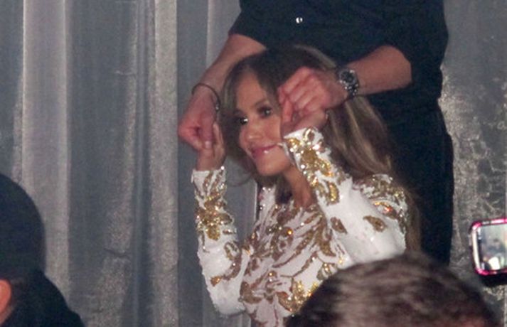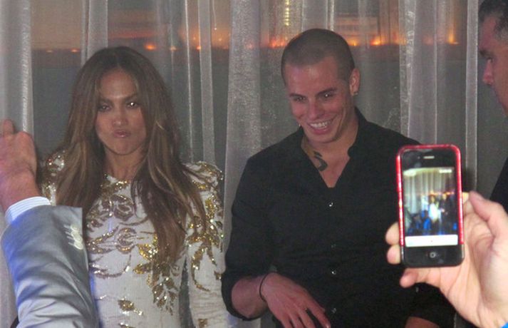 Söngkonan Jennifer Lopez skemmti sér vel með kærastanum Casper Smart í útgáfupartýi sínu sem haldið var á næturklúbbi í Las Vegas um helgina. Parið dansaði og lét vel hvort að öðru eins og sjá má í myndasafni. Einnig má sjá að Jennifer fékk lítinn frið fyrir aðdáendum sem mynduðu hana með farsímum sínum.