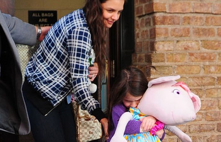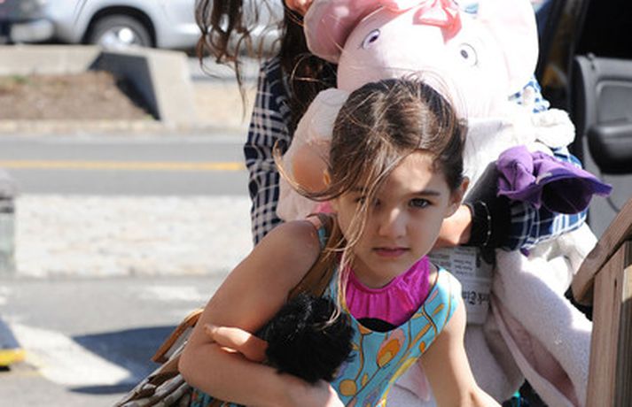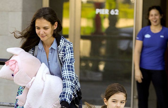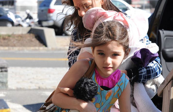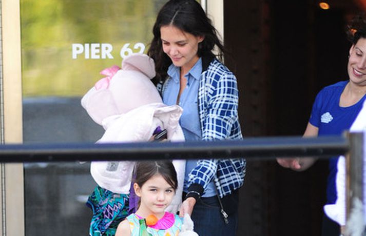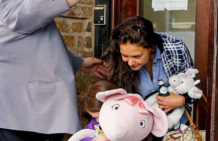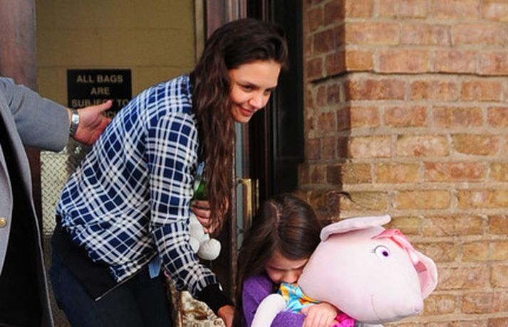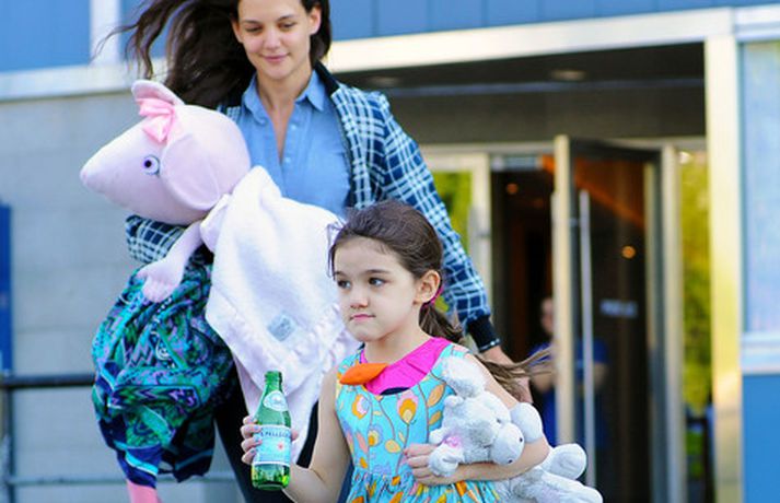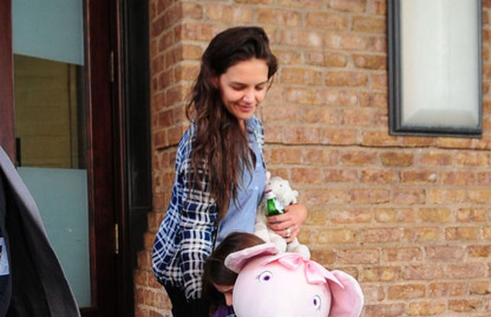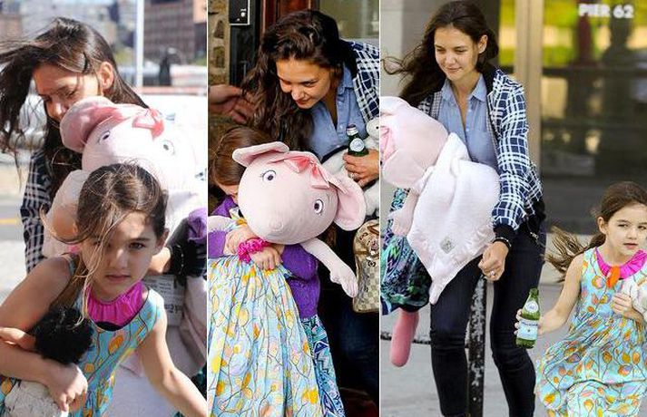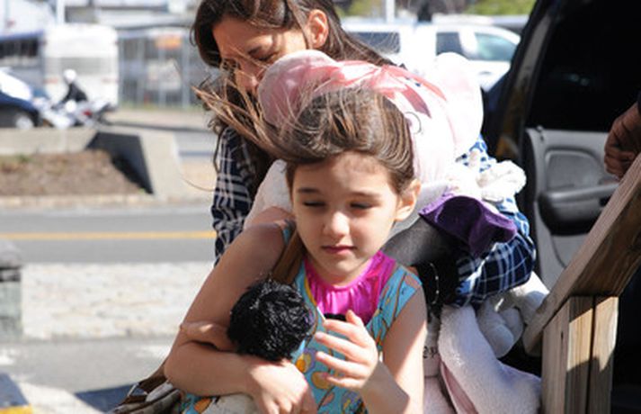 Suri Cruise og móðir hennar Katie Holmes voru myndaðar í New York á hlaupum. Þær nutu samverunnar en eins og sjá má voru þær með fullt fangið af dúkkum og brúðum. Pabbi Suri, Tom Cruise, var fjarri góðu gamni.
