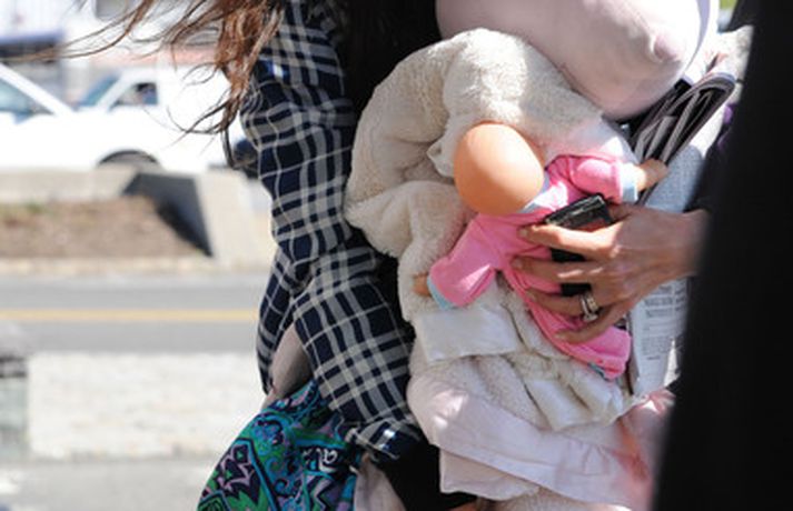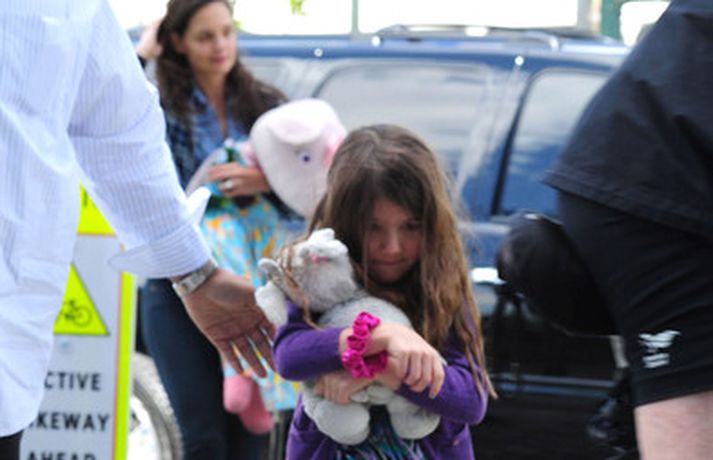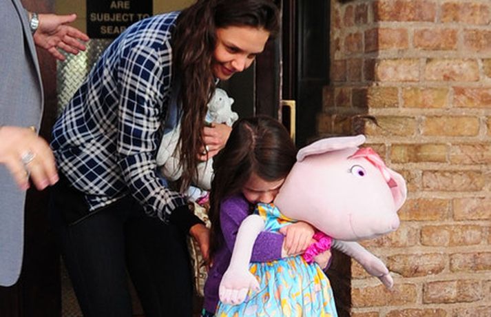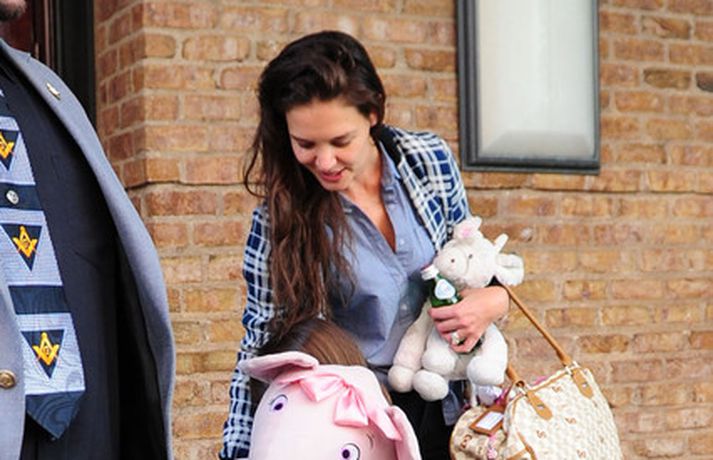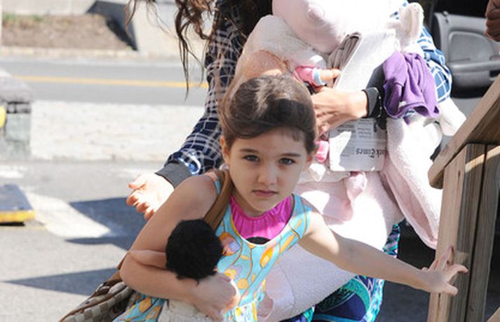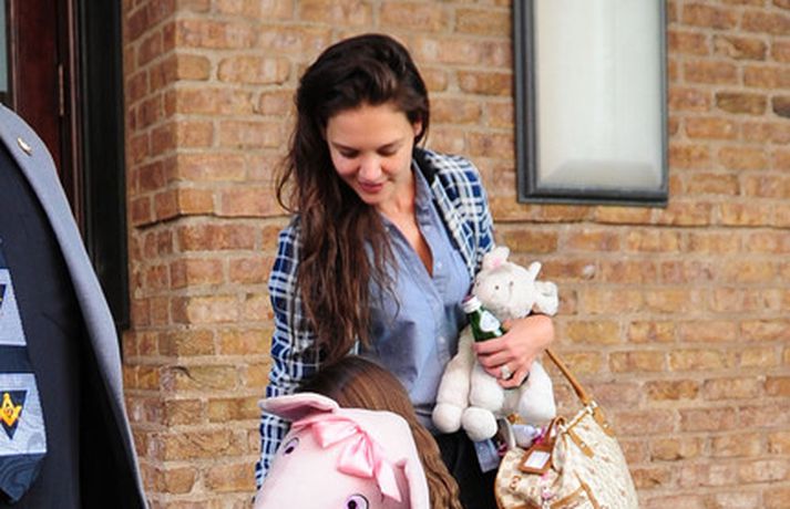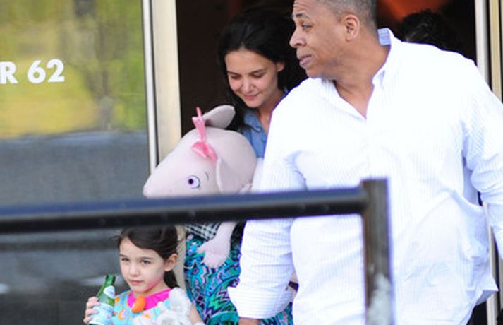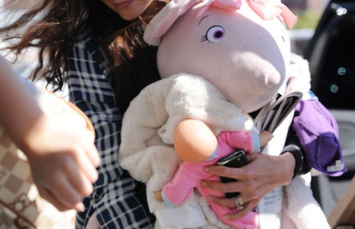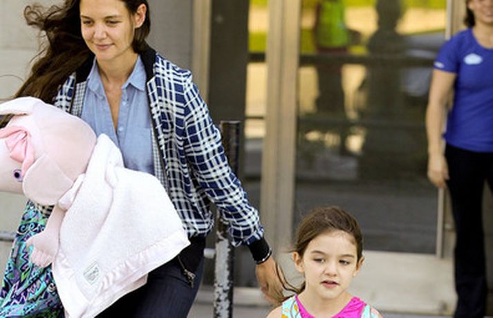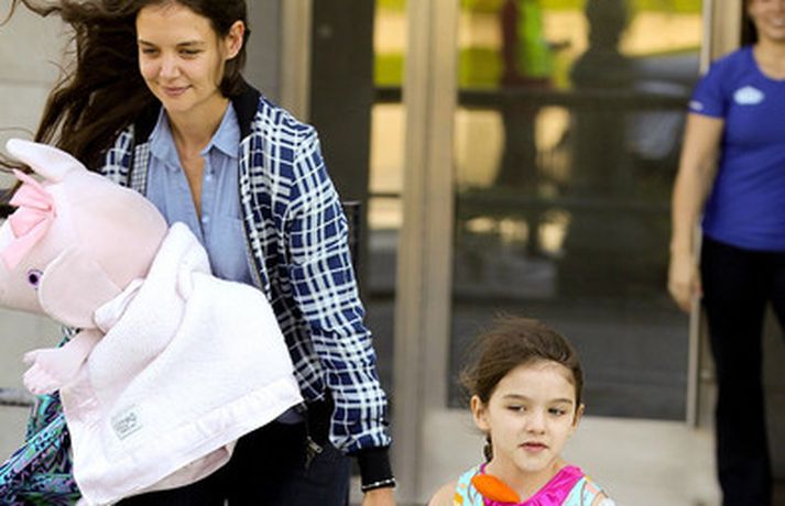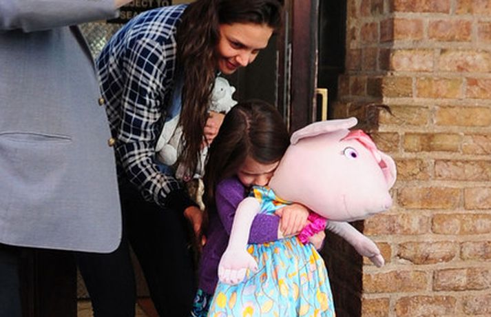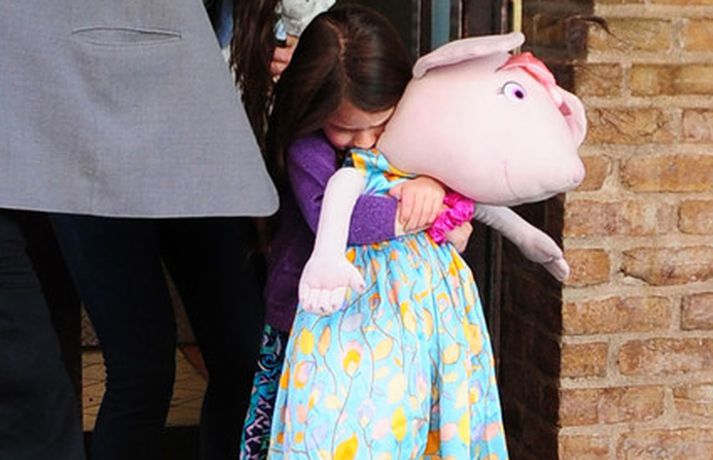 Suri Cruise og móðir hennar Katie Holmes voru myndaðar í New York á hlaupum. Þær nutu samverunnar en eins og sjá má voru þær með fullt fangið af dúkkum og brúðum. Pabbi Suri, Tom Cruise, var fjarri góðu gamni.