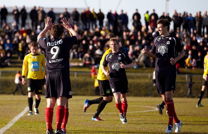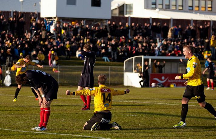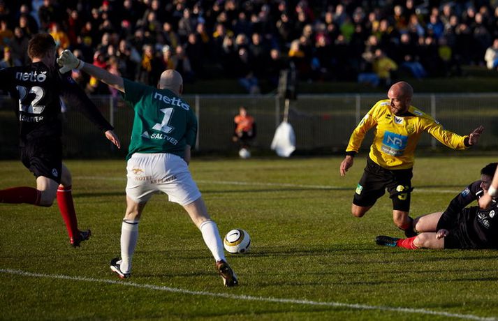 Skagamenn ætla ekki að gefa neitt eftir í Pepsi-deildinni en nýliðarnir hafa fullt hús eftir fjórar fyrstu umferðinar. ÍA-liðið vann dramatískan 3-2 sigur á Keflavík á Akranesi í kvöld þar sem að varamaðurinn Garðar Bergmann Gunnlaugsson skoraði sigurmarkið í blálokin. Garðar var að skora sitt fyrsta mark í Pepsi-deildinni í sumar en þetta var í þriðja sinn sem varamaður tryggði ÍA þrjú stig í fyrstu fjórum umferðunum Pepsi-deildarinnar í ár. Guðmundur Bjarki Halldórsson, ljósmyndari Fréttablaðsins og Vísis, var á leik ÍA og Keflavíkur á Akranesvelli í kvöld og náði þessum skemmtilegu myndum. Myndirnar má sjá í albúminu hér að neðan. Hægt er að sjá myndirnar stærri með því að smella á þær.