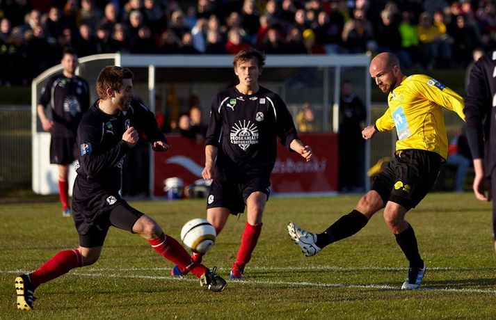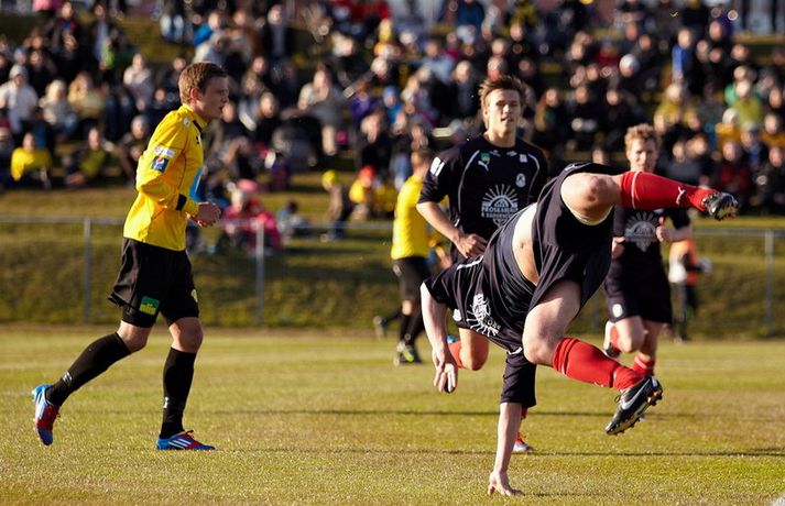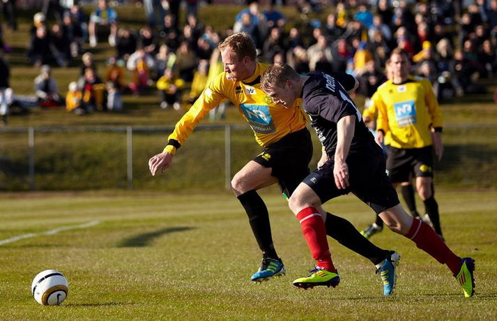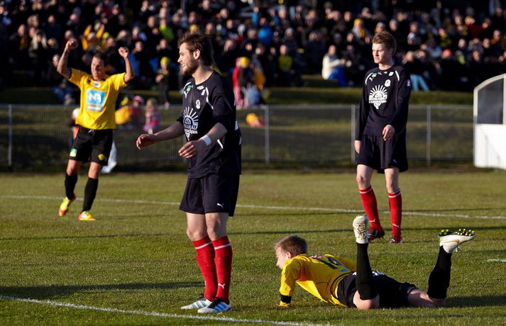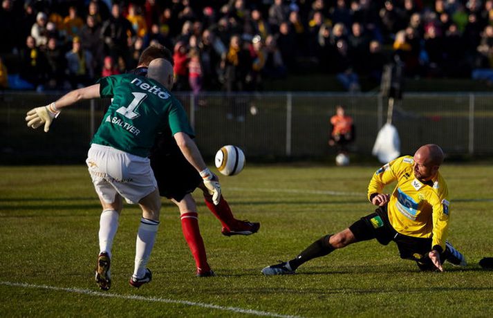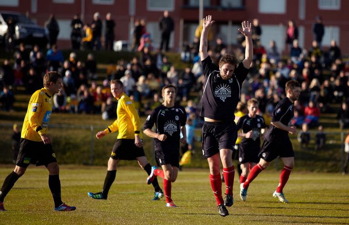 Sigurganga Skagamanna heldur áfram - myndir Óskar Ófeigur Jónsson skrifar 20. maí 2012 22:54 Mynd/Guðmundur Bjarki Halldórsson Skagamenn ætla ekki að gefa neitt eftir í Pepsi-deildinni en nýliðarnir hafa fullt hús eftir fjórar fyrstu umferðinar. ÍA-liðið vann dramatískan 3-2 sigur á Keflavík á Akranesi í kvöld þar sem að varamaðurinn Garðar Bergmann Gunnlaugsson skoraði sigurmarkið í blálokin. Garðar var að skora sitt fyrsta mark í Pepsi-deildinni í sumar en þetta var í þriðja sinn sem varamaður tryggði ÍA þrjú stig í fyrstu fjórum umferðunum Pepsi-deildarinnar í ár. Guðmundur Bjarki Halldórsson, ljósmyndari Fréttablaðsins og Vísis, var á leik ÍA og Keflavíkur á Akranesvelli í kvöld og náði þessum skemmtilegu myndum. Myndirnar má sjá í albúminu hér að neðan. Hægt er að sjá myndirnar stærri með því að smella á þær. Pepsi Max-deild karla Mest lesið Farin frá Braga eftir aðeins hálft ár Fótbolti Réttlætti Zirkzee-skiptinguna: „Stundum sækirðu betur með færri framherja“ Enski boltinn Fékk á sig víti í mögulegum kveðjuleik Enski boltinn Neyðarlegt jafntefli United gegn Úlfunum Enski boltinn Barnastjarna á Álftanesið Körfubolti Segir Ísland eiga tvo af tíu bestu í heimi Handbolti Arsenal rústaði Villa og náði fimm stiga forskoti Enski boltinn Welbeck skoraði úr einu víti og brenndi af öðru Enski boltinn Anderson henti Van Gerwen úr leik Sport Senegal vann riðilinn en missti Koulibaly í bann Fótbolti Fleiri fréttir Enn kvarnast úr liði Blika Leið Víkings að titlinum rifjuð upp í kvöld Þjálfar 2. flokk samhliða því að spila fyrir KR Færeysk landsliðskona til liðs við ÍBV Býst ekki við að spila aftur fyrir landsliðið Kynntu Sigurð á slaginu sex á aðfangadag Heyrði hvorki frá Blikum né Víkingum Úr Bestu heim í Hauka „Þetta er stærsti klúbbur Íslands“ Sagan ekki sönn: „Veit ekki hvaðan þetta á að hafa komið“ Meira en 37 stöðugildi hjá Knattspyrnusambandi Íslands Óskar Hrafn um komu Arnórs Ingva: „Gífurlega dýrmætt fyrir KR“ Arnór Ingvi orðinn leikmaður KR Breiðablik kaupir Jónatan frá Norrköping Elías mættur til meistaranna KR sagt vera að landa Arnóri Ingva Hilmar Árni til starfa hjá KR Segir fjórðung í bók Óla ósannan Víkingur í úrslit Bose-bikarsins eftir sigur „Verið heiður að spila í appelsínugulu með frábærum liðsfélögum“ Þekkir Egilshöllina vel og skoraði gegn fyrrum félögum Strákar Heimis Guðjóns fengu slæman skell í fyrsta leik Axel verður áfram hjá Aftureldingu Kveður pabba sinn í Laugardalnum og fer til FH „Félag sem var í basli með að ná endum saman og greiða laun á réttum tíma“ Skrýtið og taktlaust: „Ég er ekkert sátt með niðurstöðuna“ Fanndís kveður sviðið: „Ég er búin að fella nokkur tár“ Gylfi með tvö og Víkingar byrja á sigri Frá Akureyri til Danmerkur Markadrottningin heldur að landsliðið sé búið spil Sjá meira