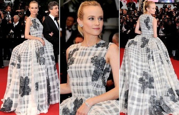 Leikkonan Diane Kruger, 35 ára, vakti mikla lukku á rauða dreglinum á kvikmyndahátíðinni í Cannes í Frakklandi. Ef meðfylgjandi myndir eru skoðaðar má sjá að hún var klædd í grámunstraðan Christian Dior kjól sem fór ekki fram hjá nokkrum einasta manni og með Boucheron eyrnalokka sem smellpössuðu við kjólinn. Kjólinn má skoða betur í myndasafni.