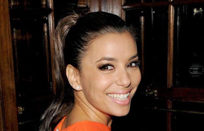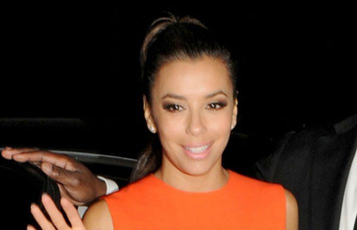 Leikkonan Eva Longoria, 37 ára, var klædd í appelsínugulan Victoriu Beckham kjól þegar hún mætti á árlega verðlaunahátíð Glamour Women í London í Englandi í gærkvöldi. Eins og sjá má er kjóllinn glæsilegur renndur að aftan.