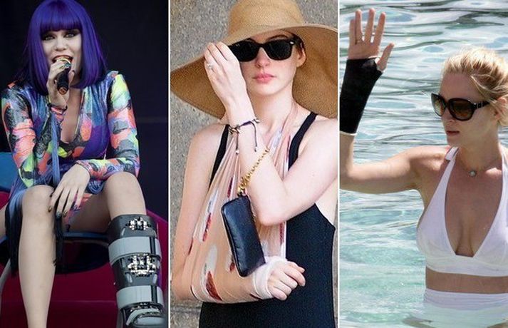 Þrátt fyrir að vera með gipsaða handleggi eða fótleggi komast Hollywood sjörnurnar ekki undan skyldum sínum eins og að koma fram eða ganga rauða dregilinn. Í meðfylgjandi myndasafni má sjá nokkrar stjörnur sem lent hafa í óhöppum undanfarið.
