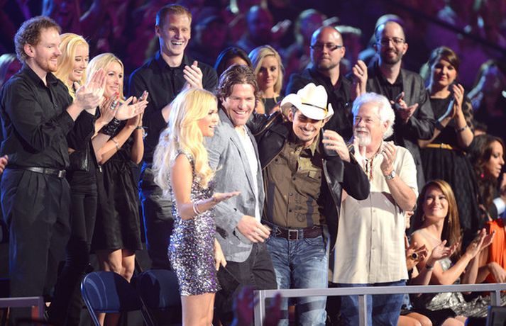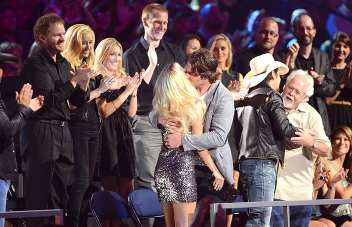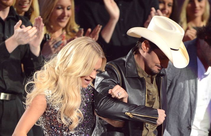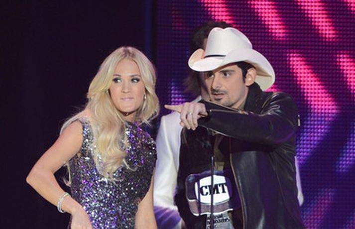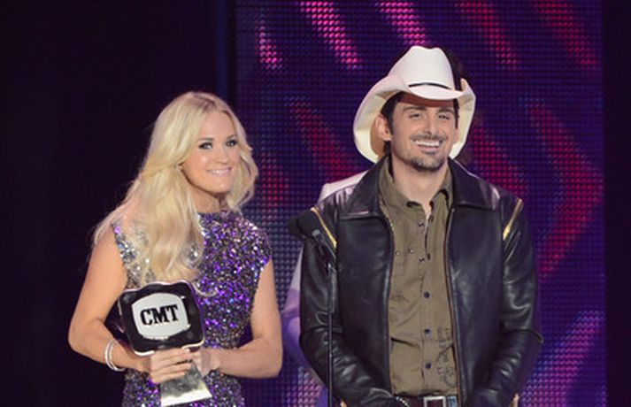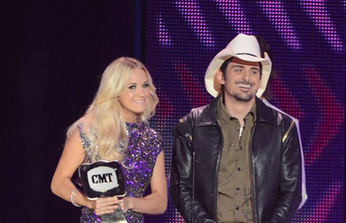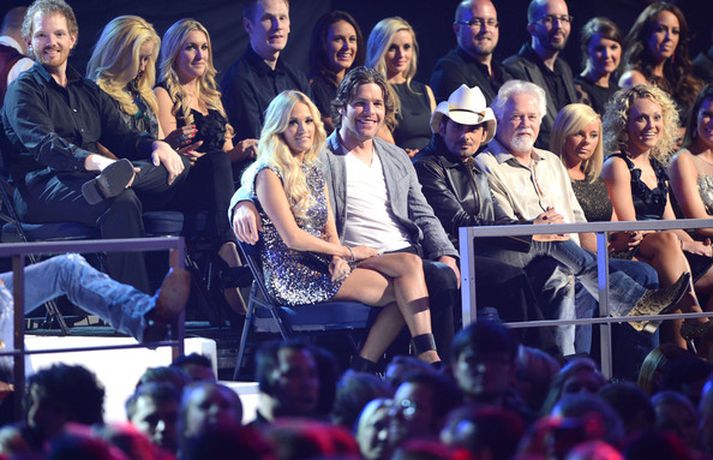 Fegurðardísin og söngkonan Carrie Underwood naut sín vel á CMT Music awards í gærkvöldi. Söngkonan bæði veitti verðlaun og hlaut verðlaun ásamt því að hún tók lagið á verðlaunahátíðinni. Ferill Carrie hófst þegar hún sigraði American Idol árið 2005 og hefur lítið lát verið á velgengni hennar síðan. Í meðfylgjandi myndasafni má sjá Carrie með unnusta sínum, íshokkíspilaranum, Mike Fisher. Myndir/covermedia