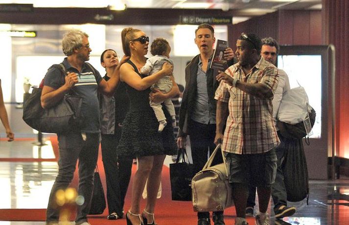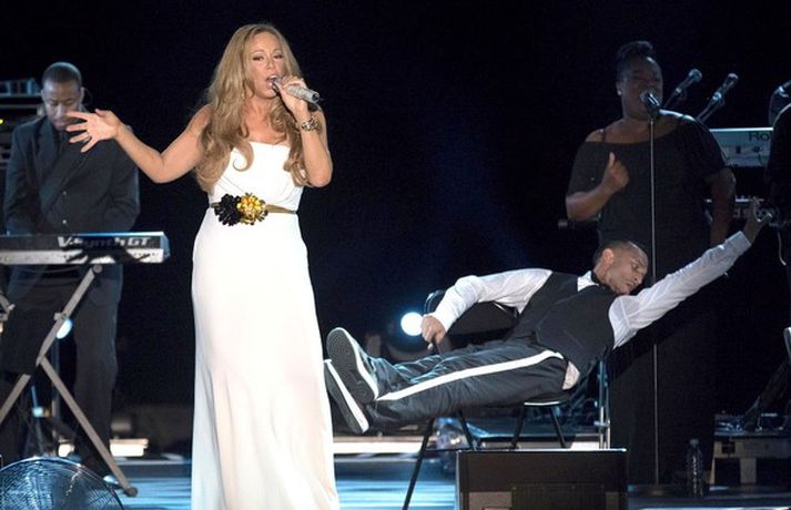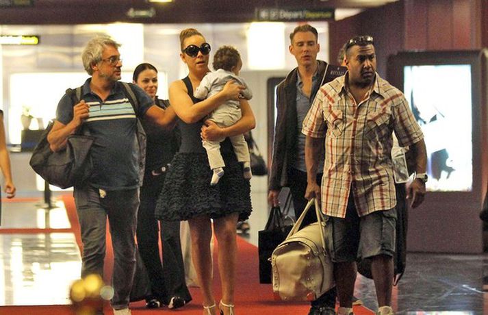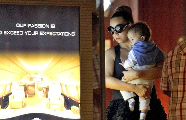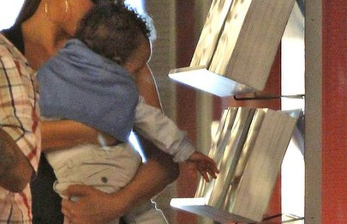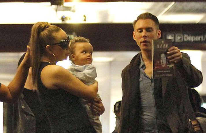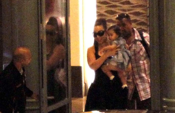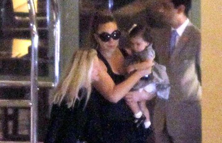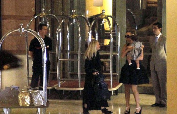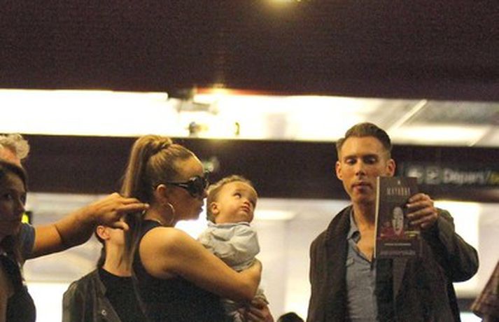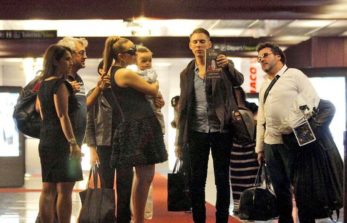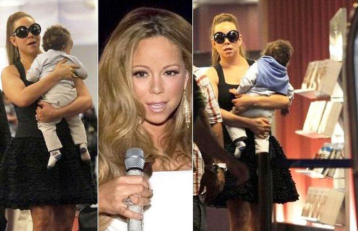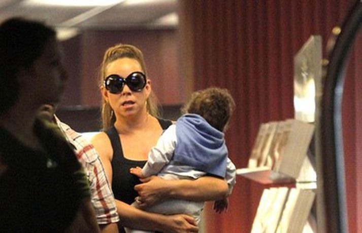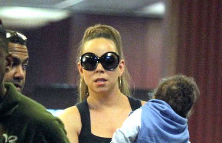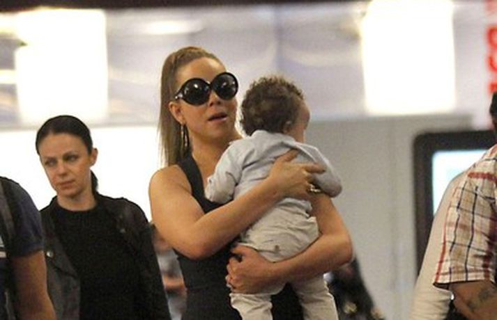 Söngkonan Mariah Carey, 42 ára, hélt á 13 mánaða gömlum syni sínum, Moroccan, þegar hún yfirgaf frönsku Rívíeruna á mánudaginn var. Hún hélt einnig á Monroe dóttur sinni, tvíburasystir drengsins. Þá má sjá söngdívuna á sviði þenja raddböndin í Mónakó eins og henni einni er lagið.