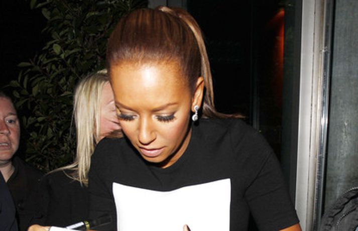 Söngkonan Mel B var glæsileg að sjá er hún yfirgaf hótel í Manchester í gær en hún er þar stödd til að sinna hlutverki sínu sem gestadómari í sjónvarpsþættinum vinsæla, X Factor. Einnig má sjá Mel á förnum vegi fyrr í vikunni þar sem hún sinnir meðal annars aðdáendum sínum.