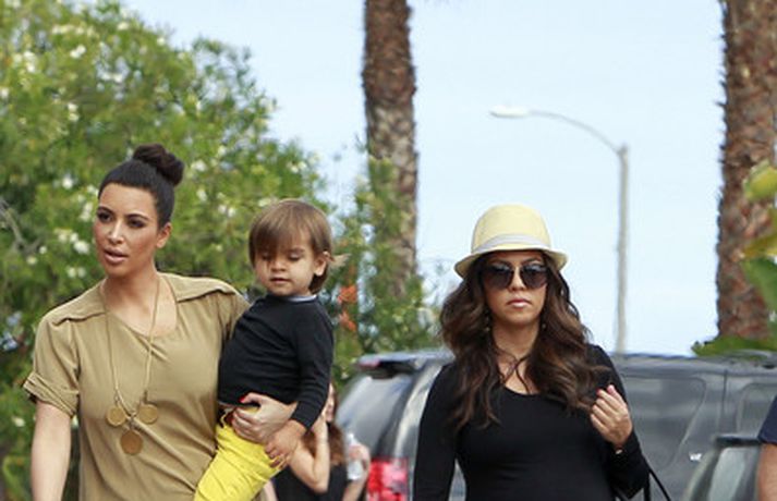 Kim Kardashian og Kourtney Kardashian áttu góðan dag saman um helgina ásamt móður sinni, Kris Jenner er þær fóru í morgunverð og dýragaðsferð með son Kourtney. Kim dekraði við litla frænda sinni og létti á Kourtney sem á von á sínu öðru barni innan tíðar.