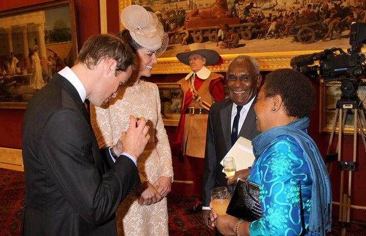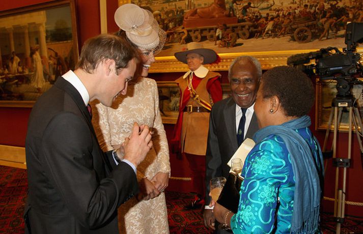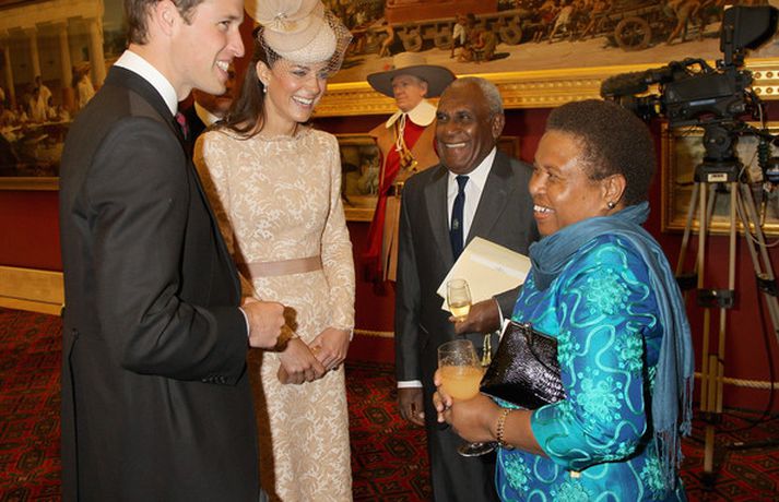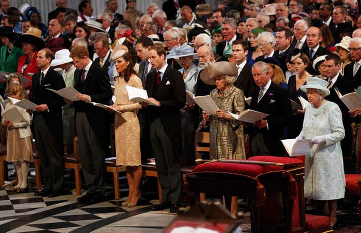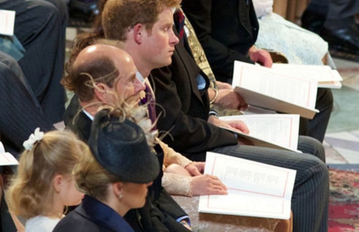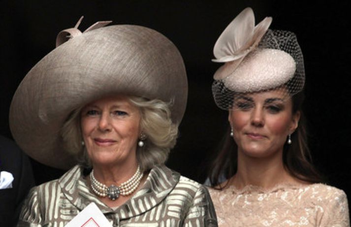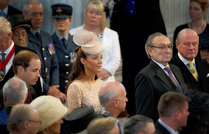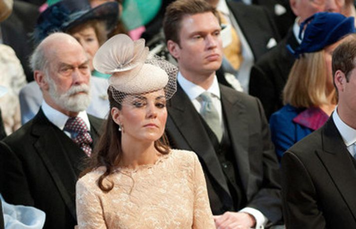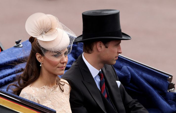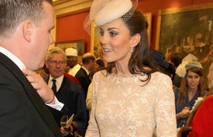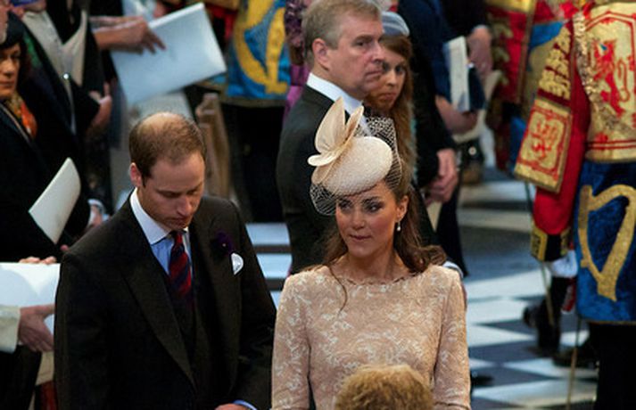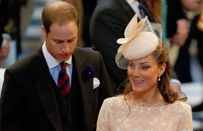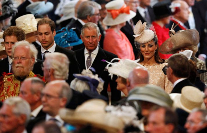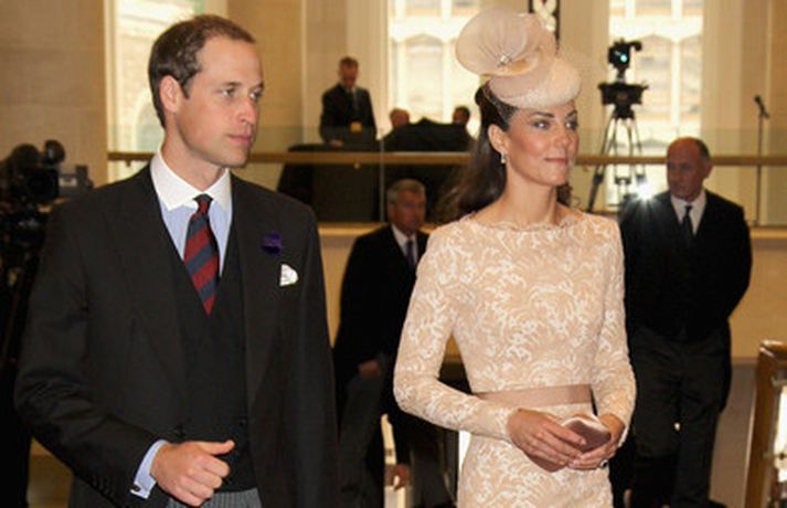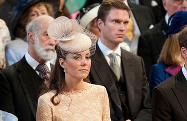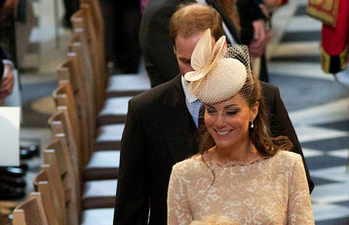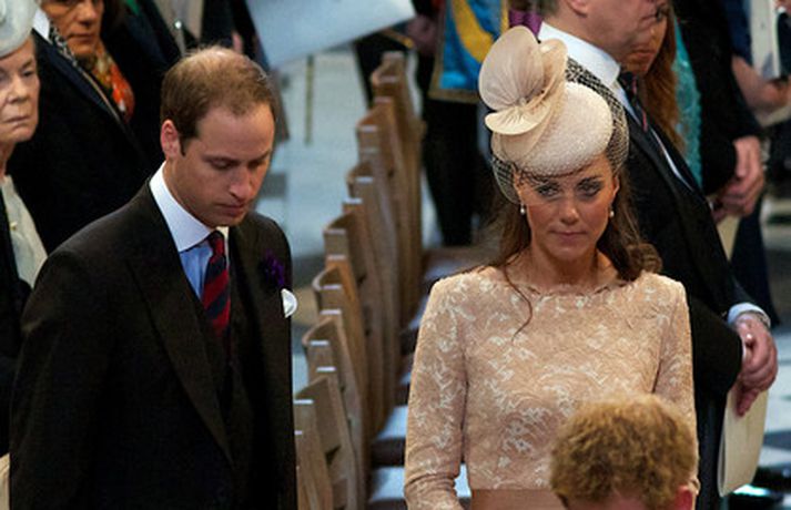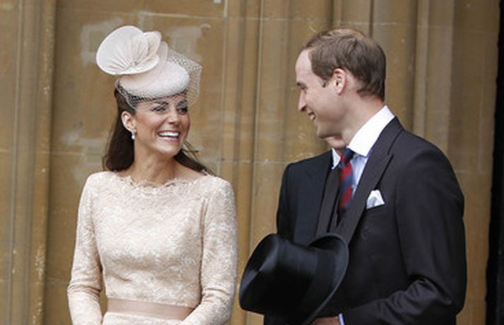 Eins og sjá má á meðfylgjandi myndum var hertogaynjan af Cambridge, Kate Middleton, 30 ára, klædd í föl-bleikan Alexander McQueen kjól sem var vægast sagt glæsilegur á henni. Hún toppaði heildarútlitið með fallegan Jane Taylor hatt á höfði. Ekki nóg með að Kate steli senunni hvert sem hún kemur heldur er greinilegt að hún og Harry, bróðir Vilhjálms eiginmanns hennar, nái vel saman. Breska konungsfjölskyldan hefur tekið henni opnun örmum á því leikur enginn vafi. Harry hefur sagt að Kate sé systirin sem hann eignaðist aldrei.myndir/cover media
