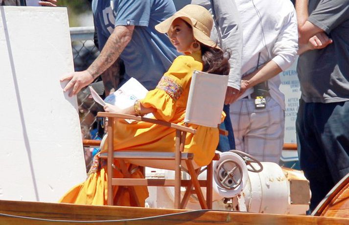 Leikkonan Lindsay Lohan hefur nóg að gera þessa dagana. Eins og sjá má á meðfylgjandi myndum sem teknar voru af henni á snekkju við tökur á kvikmyndinni Liz & Dick er hún með litað dökkt hárið eins og Elizabeth var.Hér má skoða fleiri myndir sem teknar voru um helgina.