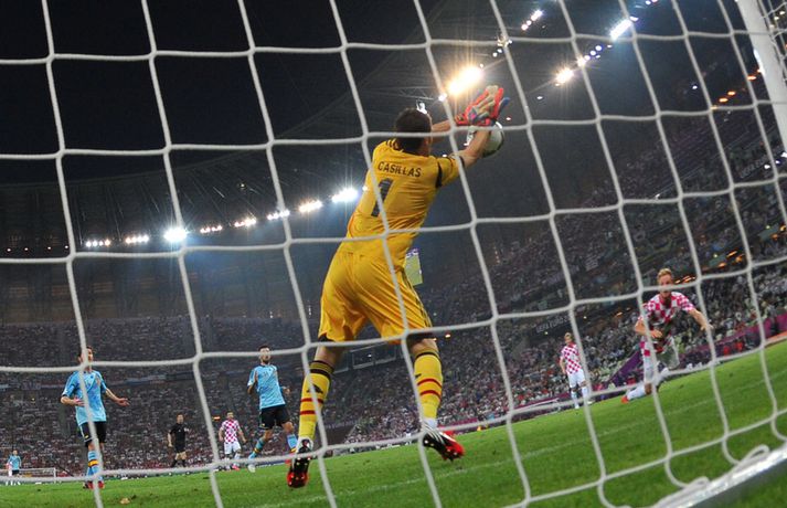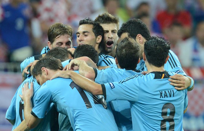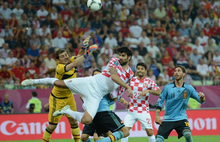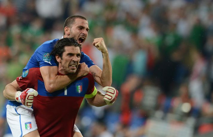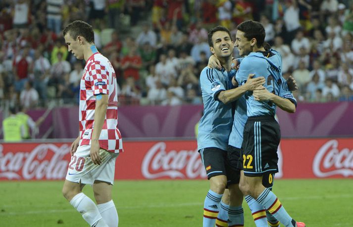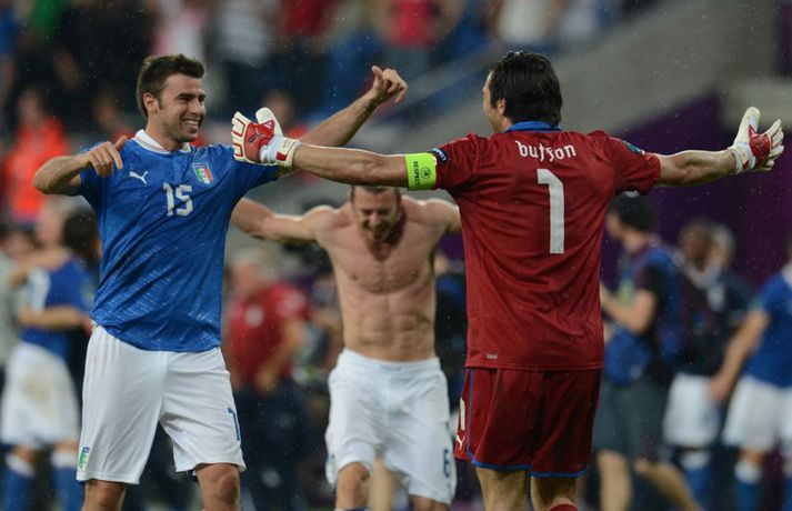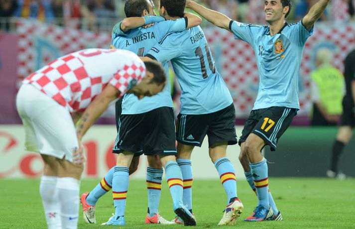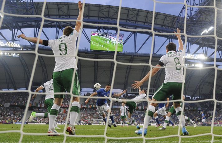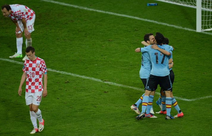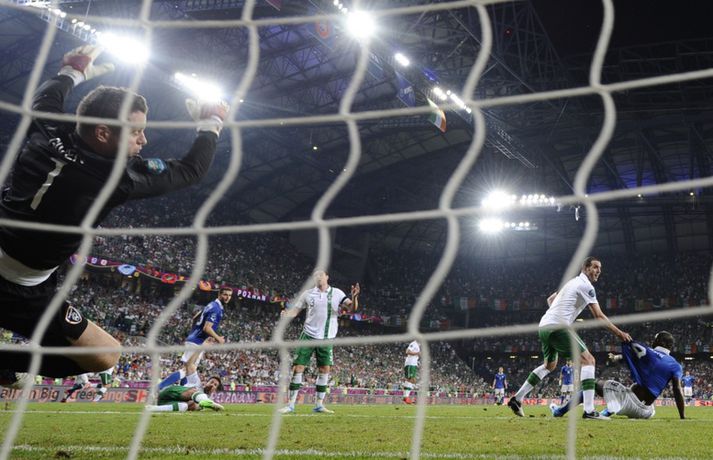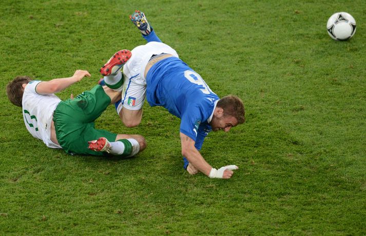 Spánverjar og Ítalir í átta liða úrslitin á EM - myndir Óskar Ófeigur Jónsson skrifar 18. júní 2012 22:15 Mynd/AP Spánverjar og Ítalir unnu lokaleiki sína í C-riðli Evrópumótsins í fótbolta í kvöld og tryggðu sér sæti í átta liða úrslitum. Ítalir voru ekki í miklum vandræðum með að vinna Íra 2-0 en Spánverjar sluppu með skrekkinn á móti Króötum og tryggðu sér síðan 1-0 sigur í blálokin. Antonio Cassano og Mario Balotelli skoruðu mörk Ítala á móti Írum. Cassano skoraði fyrra markið með skalla eftir hornspyrnu Andrea Pirlo. í fyrri hálfleik en Balotelli það síðara í lokin með frábæru viðstöðulausu skoti eftir að hafa komið inn á sem varamaður. Spánverjar tryggðu sér sigur í riðlinum með því að vinna 1-0 sigur á Króatíu. Jesús Navas kom inn á sem varamaður fyrir Fernando Torres eftir klukkutíma og skoraði eina markið leiksins tveimur mínútum fyrir leikslok. Ljósmyndarar AFP-fréttastofunnar voru að sjálfsögðu mættir með myndavélar sínar á leikina í kvöld og við höfum tekið saman myndasyrpu frá leikjum dagsins. Myndirnar má sjá í albúminu hér að neðan. Hægt er að sjá myndirnar stærri með því að smella á þær. Mest lesið Nýjar upplýsingar um heilsufar Michaels Schumacher Formúla 1 Óvinur Íslands: „Aldrei stríða heilu landi“ Handbolti Þetta er ástæða þess að Ísland er í efsta sæti í milliriðlinum Handbolti Ánægðir með stælana í Hauki: „Sagði bara fokkaðu þér“ Handbolti Dregur til baka ummæli sín um Gísla Þorgeir Handbolti Segist hafa brugðist gegn Íslandi: „Ég komst aldrei framhjá þeim“ Handbolti „Við mættum ótrúlega góðu íslensku liði í dag“ Handbolti Sænska goðsögnin: Þeir hafa ekki viljann sem Íslendingar hafa Handbolti Ekki gerst hjá Arsenal í átján ár Enski boltinn „Svo kemur Ómar Ingi og fer að spila eins og Viggó“ Handbolti Fleiri fréttir Sagðir borga 200 milljónir fyrir Kristal Mána Ekki gerst hjá Arsenal í átján ár Sjáðu draumamark Dorgu og öll hin í sigri United á Arsenal Hákon í leikbanni og Lille steinlá á heimavelli Orri sneri aftur eftir meiðsli Varamaðurinn tryggði United sigur gegn Arsenal Sjáðu Yamal skora „besta mark tímabilsins“ Tókst bara að jafna gegn tíu mönnum í toppslagnum Logi skoraði sjálfsmark í sigri Mikael Egill fagnaði endurkomusigri Aston Villa lifði af orrahríð fyrir norðan og náði Manchester City Heiðdís leggur skóna á hilluna Hlín utan hóps er Lehmann kom að marki í fyrsta leik Estevao með mark og stoðsendingu gegn lánlausu Palace liði Ásdís Karen lagði upp í öruggum sigri gegn botnliðinu Sjáðu alla dramatíkina úr enska boltanum Mbappé skaut Real Madrid upp í toppsætið Van Dijk segir að það hafi „klárlega verið brotið á sér“ í sigurmarkinu „Sigurmark undir lokin er fullkomið fyrir okkur“ Liverpool-vandræðin halda áfram og Bournemouth með sigurmark í blálokin Hákon framlengdi við Lille til 2030 Alberti og félögum mistókst að komast upp úr fallsæti Stórbrotið sigurmark hjá Harry Wilson Haaland fékk smá hvíld í kærkomnum sigri City Víkingur og Þróttur mætast í úrslitaleik Reykjavíkurmótsins Bayern tapaði deildarleik í fyrsta sinn á tímabilinu Alfons fer aftur til Hollands Elísa fer frá Val til Breiðabliks Hömruðu meðan járnið var heitt í sigri gegn Sunderland Sandra fiskaði víti og fagnaði sigri í Íslendingaslag Sjá meira