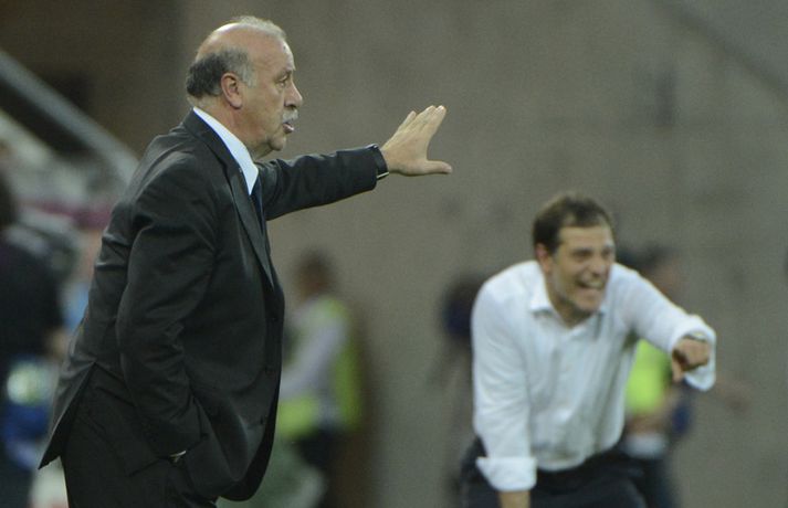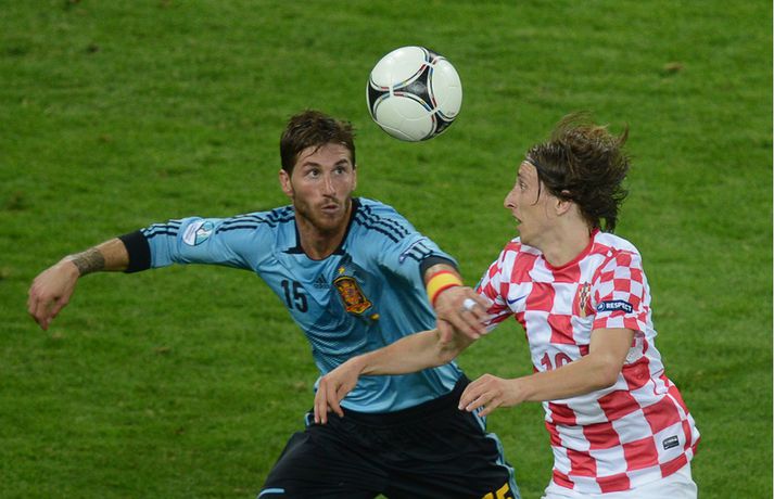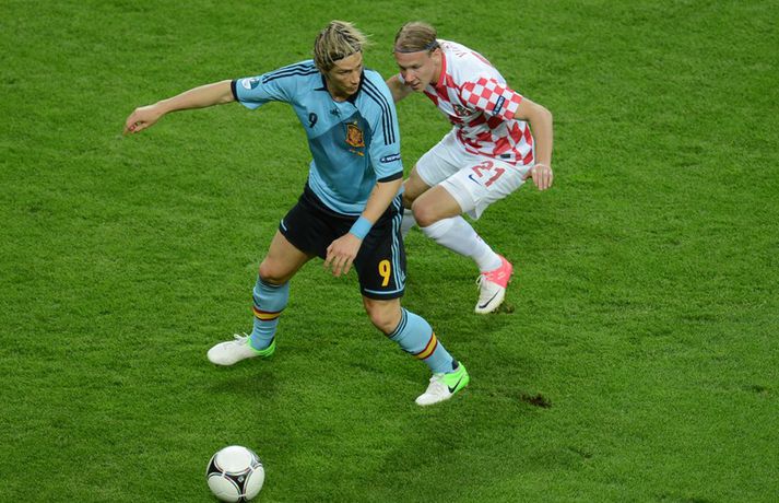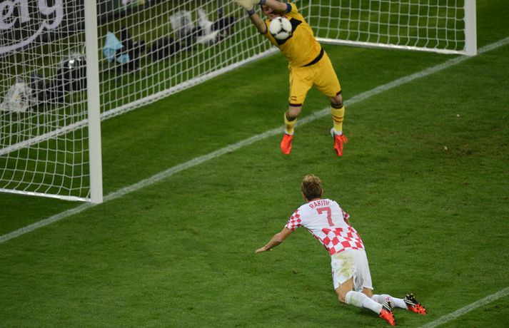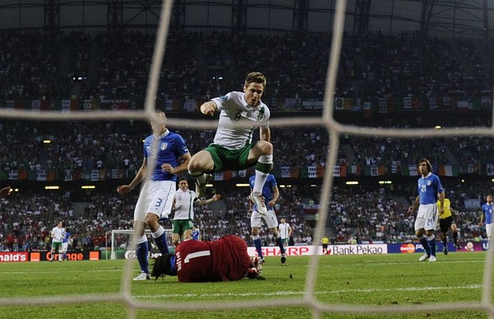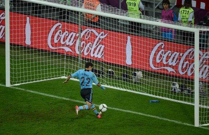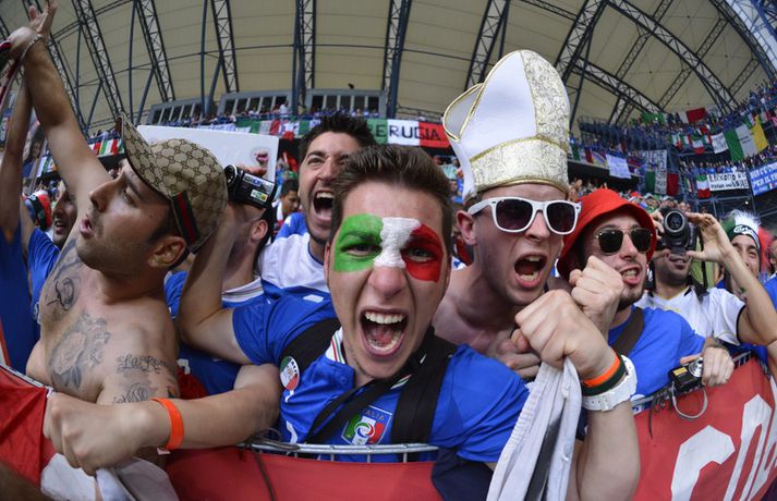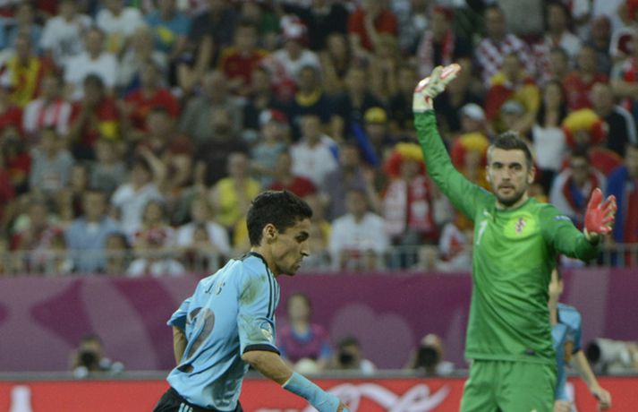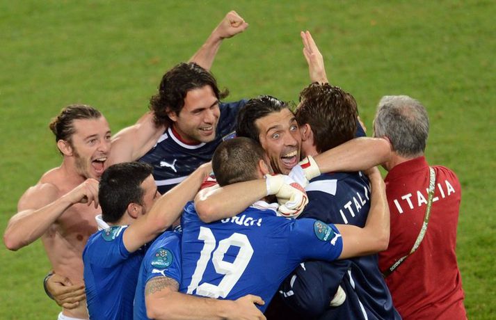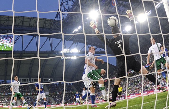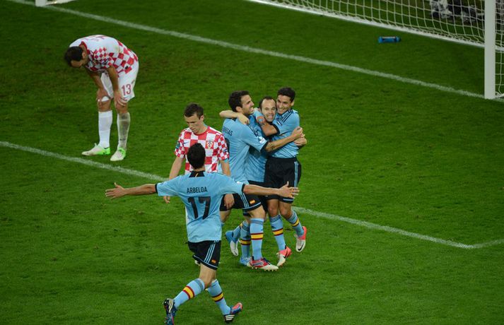 Spánverjar og Ítalir í átta liða úrslitin á EM - myndir Óskar Ófeigur Jónsson skrifar 18. júní 2012 22:15 Mynd/AP Spánverjar og Ítalir unnu lokaleiki sína í C-riðli Evrópumótsins í fótbolta í kvöld og tryggðu sér sæti í átta liða úrslitum. Ítalir voru ekki í miklum vandræðum með að vinna Íra 2-0 en Spánverjar sluppu með skrekkinn á móti Króötum og tryggðu sér síðan 1-0 sigur í blálokin. Antonio Cassano og Mario Balotelli skoruðu mörk Ítala á móti Írum. Cassano skoraði fyrra markið með skalla eftir hornspyrnu Andrea Pirlo. í fyrri hálfleik en Balotelli það síðara í lokin með frábæru viðstöðulausu skoti eftir að hafa komið inn á sem varamaður. Spánverjar tryggðu sér sigur í riðlinum með því að vinna 1-0 sigur á Króatíu. Jesús Navas kom inn á sem varamaður fyrir Fernando Torres eftir klukkutíma og skoraði eina markið leiksins tveimur mínútum fyrir leikslok. Ljósmyndarar AFP-fréttastofunnar voru að sjálfsögðu mættir með myndavélar sínar á leikina í kvöld og við höfum tekið saman myndasyrpu frá leikjum dagsins. Myndirnar má sjá í albúminu hér að neðan. Hægt er að sjá myndirnar stærri með því að smella á þær. Mest lesið Nýjar upplýsingar um heilsufar Michaels Schumacher Formúla 1 Óvinur Íslands: „Aldrei stríða heilu landi“ Handbolti Þetta er ástæða þess að Ísland er í efsta sæti í milliriðlinum Handbolti Ánægðir með stælana í Hauki: „Sagði bara fokkaðu þér“ Handbolti Dregur til baka ummæli sín um Gísla Þorgeir Handbolti Segist hafa brugðist gegn Íslandi: „Ég komst aldrei framhjá þeim“ Handbolti „Við mættum ótrúlega góðu íslensku liði í dag“ Handbolti Sænska goðsögnin: Þeir hafa ekki viljann sem Íslendingar hafa Handbolti Ekki gerst hjá Arsenal í átján ár Enski boltinn „Svo kemur Ómar Ingi og fer að spila eins og Viggó“ Handbolti Fleiri fréttir Sagðir borga 200 milljónir fyrir Kristal Mána Ekki gerst hjá Arsenal í átján ár Sjáðu draumamark Dorgu og öll hin í sigri United á Arsenal Hákon í leikbanni og Lille steinlá á heimavelli Orri sneri aftur eftir meiðsli Varamaðurinn tryggði United sigur gegn Arsenal Sjáðu Yamal skora „besta mark tímabilsins“ Tókst bara að jafna gegn tíu mönnum í toppslagnum Logi skoraði sjálfsmark í sigri Mikael Egill fagnaði endurkomusigri Aston Villa lifði af orrahríð fyrir norðan og náði Manchester City Heiðdís leggur skóna á hilluna Hlín utan hóps er Lehmann kom að marki í fyrsta leik Estevao með mark og stoðsendingu gegn lánlausu Palace liði Ásdís Karen lagði upp í öruggum sigri gegn botnliðinu Sjáðu alla dramatíkina úr enska boltanum Mbappé skaut Real Madrid upp í toppsætið Van Dijk segir að það hafi „klárlega verið brotið á sér“ í sigurmarkinu „Sigurmark undir lokin er fullkomið fyrir okkur“ Liverpool-vandræðin halda áfram og Bournemouth með sigurmark í blálokin Hákon framlengdi við Lille til 2030 Alberti og félögum mistókst að komast upp úr fallsæti Stórbrotið sigurmark hjá Harry Wilson Haaland fékk smá hvíld í kærkomnum sigri City Víkingur og Þróttur mætast í úrslitaleik Reykjavíkurmótsins Bayern tapaði deildarleik í fyrsta sinn á tímabilinu Alfons fer aftur til Hollands Elísa fer frá Val til Breiðabliks Hömruðu meðan járnið var heitt í sigri gegn Sunderland Sandra fiskaði víti og fagnaði sigri í Íslendingaslag Sjá meira