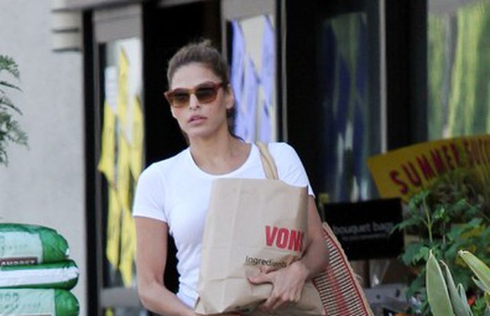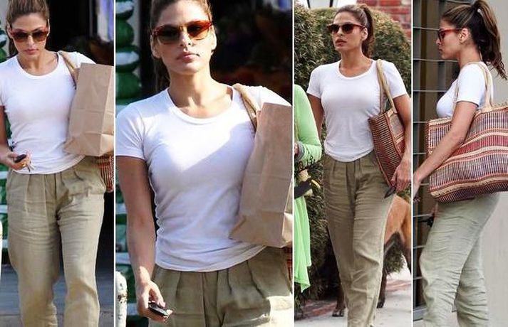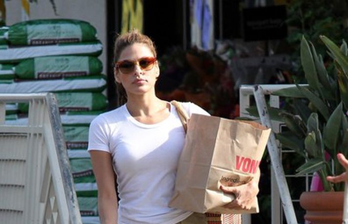 Leikkonan Eva Mendes, 38 ára,var mynduð á götum Los Angeles í gærdag með hárið tekið aftur í tagl og sólgleraugu á nefinu. Eins og sjá má í myndasafni var leikkonan í hörbuxum í húðlit sem fóru henni vel eins og allt sem hún klæðist. Unnusti hennar, leikarinn Ryan Gosling, var hvergi sjáanlegur.