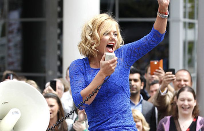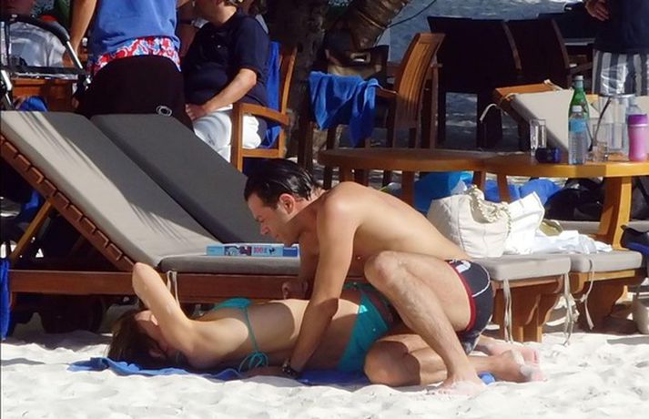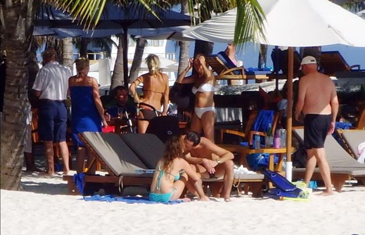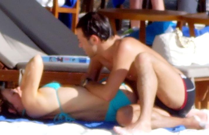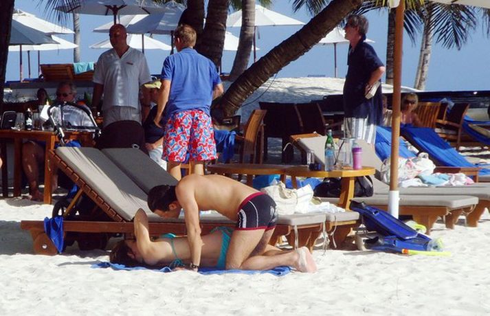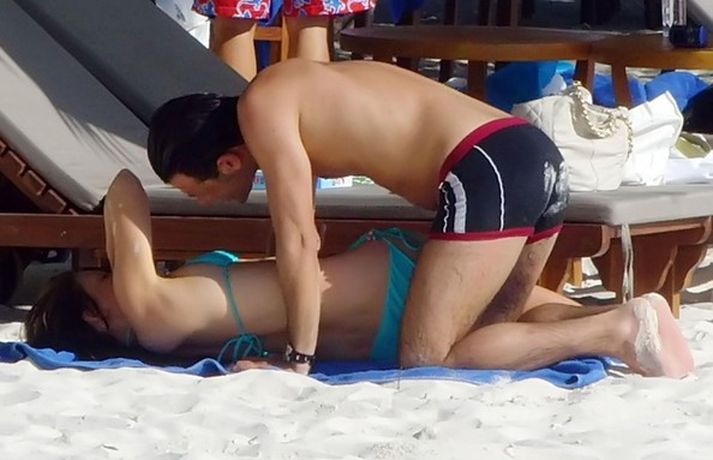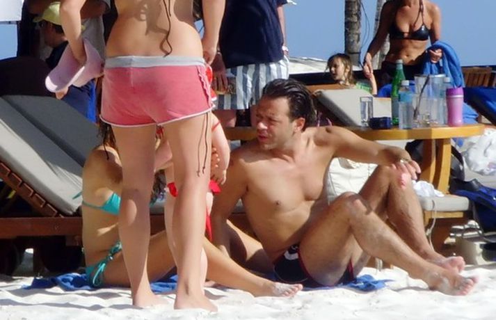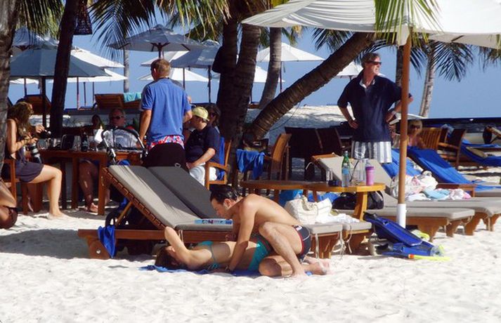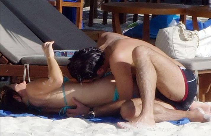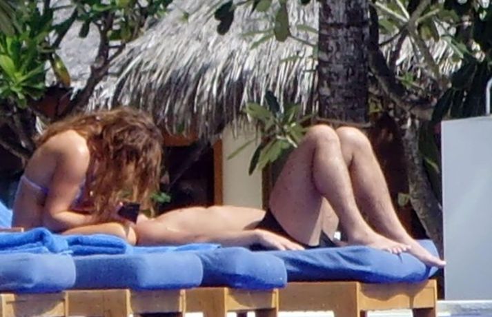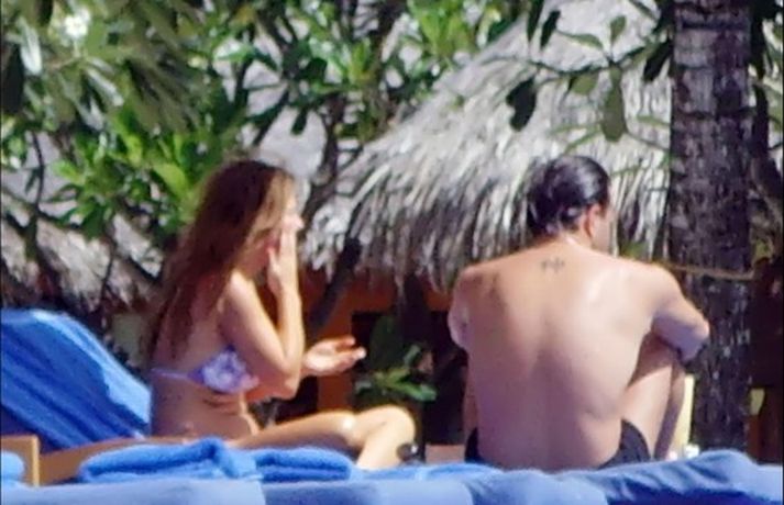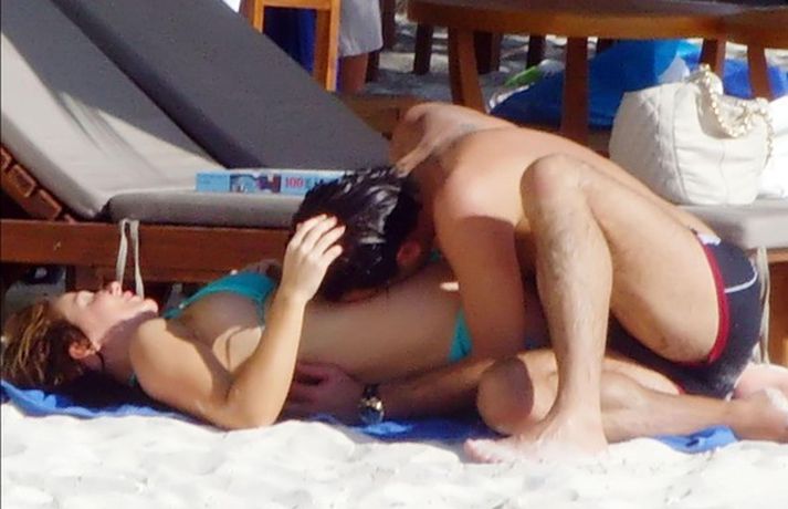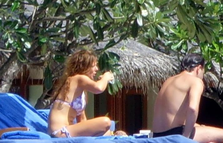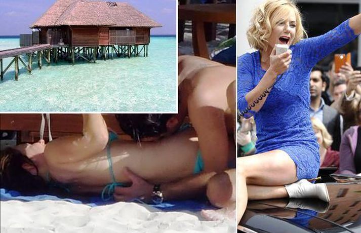 Fyrrum Kryddpían Geri Halliwell og unnusti hennar, Ítalinn Fabrizio Politi, njóta stundarinnar saman á Maldives eyjunum um þessar mundir eins og sjá má á myndunum. Þau fóru ekki leynt með ást sína í sandinum. Þá má sjá söngkonuna í vinnunni sitjandi uppi á bíl syngjandi glaða í bláum kjól.
