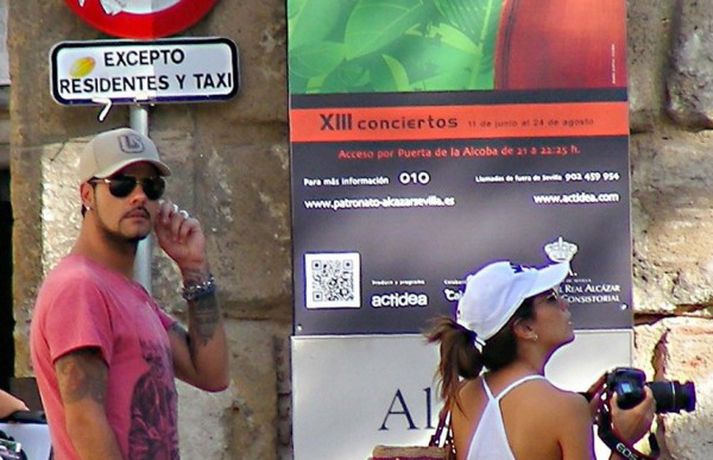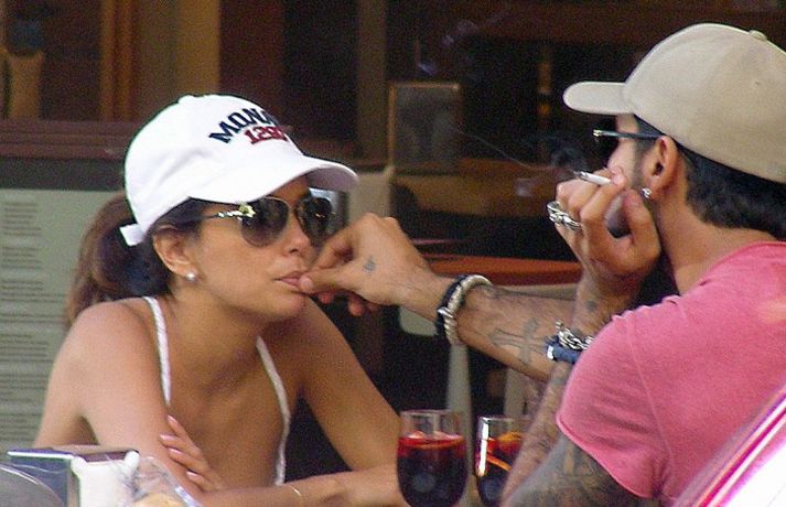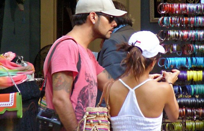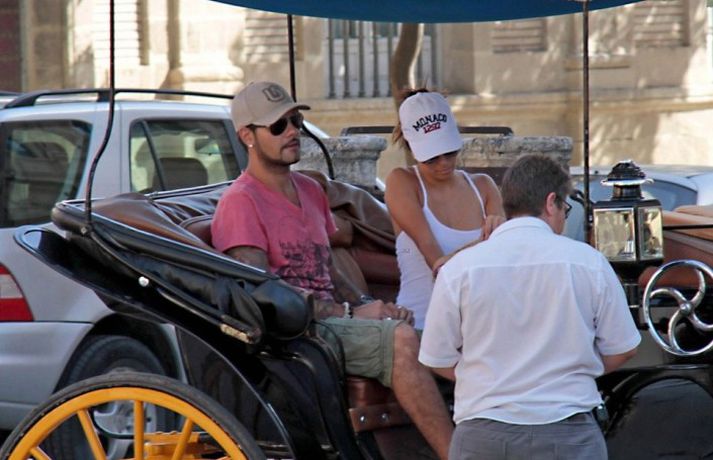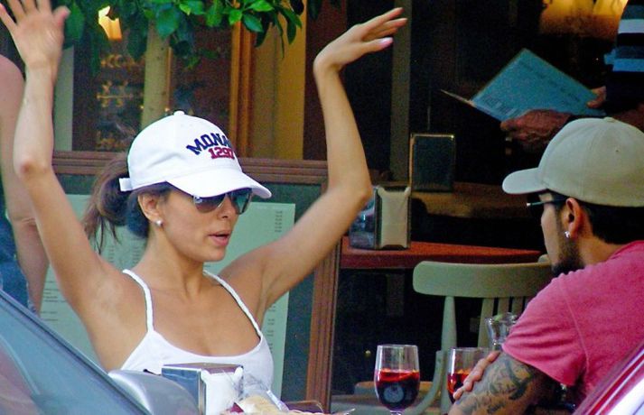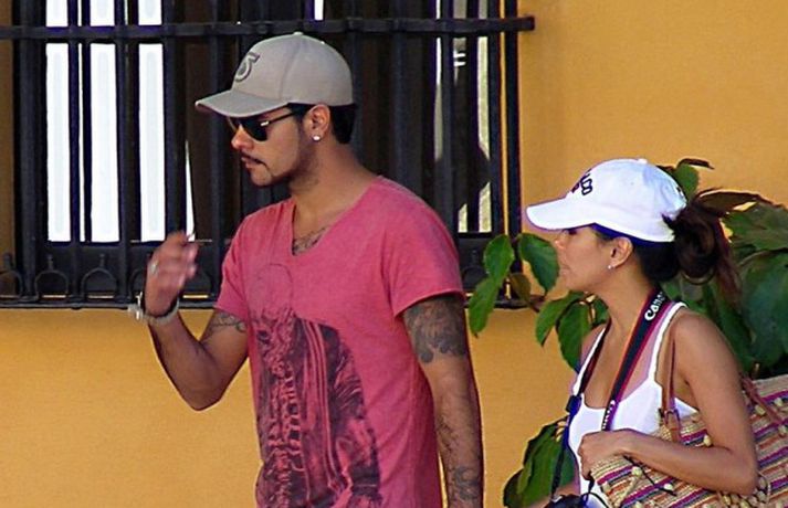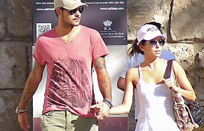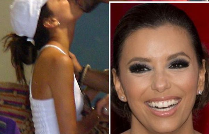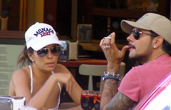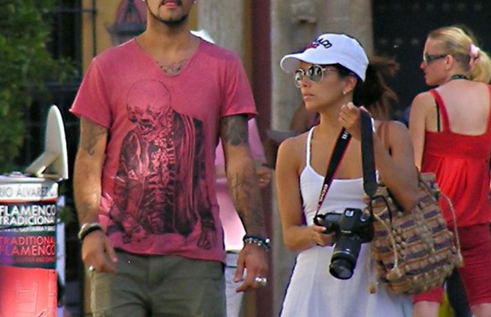 Leikkonan Eva Longoria, 37 ára, og unnusti hennar Eduardo Cruz, sem hún hætti með um daginn en ákvað svo að byrja aftur með enda ástfangin upp fyrir haus ef marka má myndirnar sem voru teknar af þeim í Sevilla á Spáni í gærdag. Eins og sjá má fengu þau sér að snæða, kysstust og létu vel að hvort öðru. Þá má sjá Evu klædd í síðan hvítan kjól á rauða dreglinum.