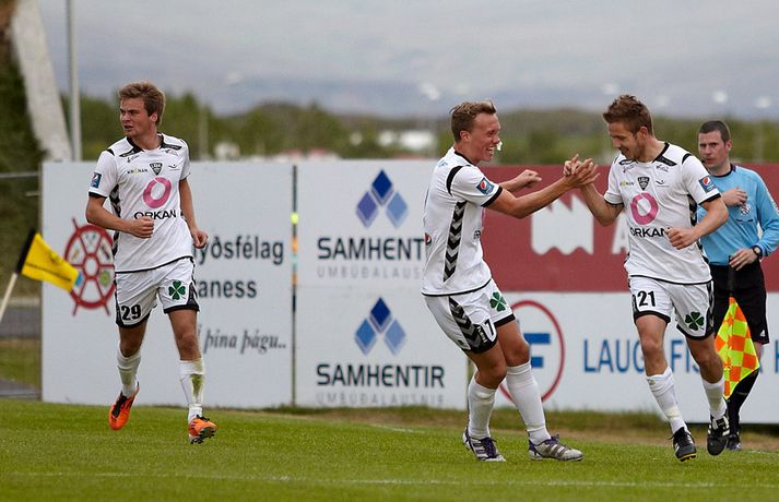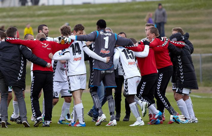 Skagamenn töpuðu sínum fyrsta leik í Pepsi-deild karla í sumar þegar Eyjamenn unnu 4-0 sigur á Skipaskaga í gærkvöldi. Daninn Christian Olsen skoraði þrjú marka Eyjamanna sem eru komnir með átta stig og fjarlægðust botnbaráttuna í bili. Sjöundu umferð Pepsi-deildarinnar lýkur í dag með þremur leikjum. Guðmundur Bjarki Halldórsson var að sjálfsögðu mættur á Akranesvöll í gærkvöldi og tók þessar myndir.