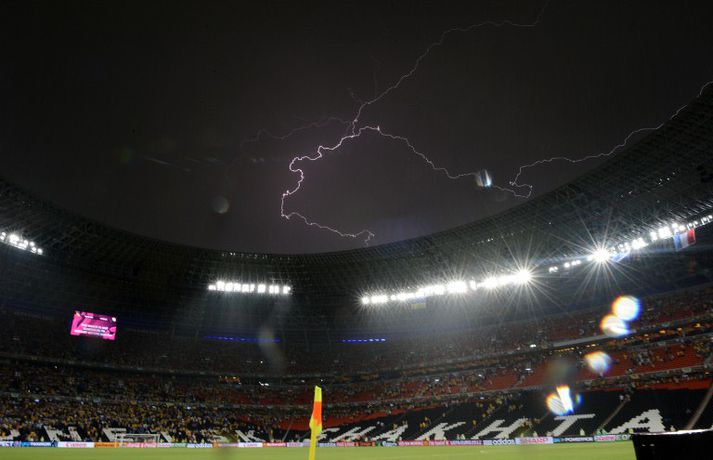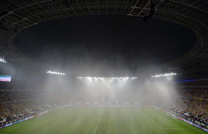 Eldingar og úrhelli í Donetsk | Myndasyrpa Kolbeinn Tumi Daðason skrifar 15. júní 2012 17:20 Úrhellið í Donetsk. Nordicphotos/AFP Hollenski dómarinn Björn Kuipers stöðvaði leik Úkraínu og Frakklands eftir tæplega fimm mínútna leik vegna rigningar og eldinga. Leik var frestað um tæpan klukkutíma á meðan dómari leiksins réð ráðum sínum. Aðstæður til knattspyrnuiðkunar voru bæði afar slæmar vegna bleytu á vellinum. Þá var ljósabúnaður í rjáfri stúku leikvangsins einnig í hættu vegna eldingahættu. Hér til hliðar má sjá nokkrar magnaðar myndir frá Donetsk í boði AFP Nordic. Tengdar fréttir Franskur sigur í úrhellinu í Donetsk Frakkar unnu 2-0 sigur á Úkraínu í viðureign þjóðanna í D-riðli Evrópumótsins í knattspyrnu í dag. Tvö mörk Frakka með skömmu millibili í síðari hálfleik tryggðu þeim sigurinn. 15. júní 2012 10:16 Mest lesið Leikmanni Tindastóls var meinaður aðgangur inn í landið Körfubolti Solskjær í viðræður við United Enski boltinn Ýmir ekki sár yfir vali Loga og Kára: „Veit hvar ég stend í þessu liði“ Handbolti Komst við er hann ræddi Schumacher Formúla 1 Tvíburasysturnar óvænt hættar Körfubolti Draumaráðning Hjörvars sem brosir breitt eftir tíðindi dagsins Enski boltinn Greindi sjálfur frá því að hann tæki við Chelsea Enski boltinn F1-ökumaður gagnrýndur fyrir vanvirðingu við Schumacher Formúla 1 Minningarstund um Åge á stað sem var honum kær: „Huggun á erfiðum tímum“ Fótbolti Erfitt að fara fram úr rúminu Handbolti Fleiri fréttir Logi út af í hálfleik í bikartapi Lærisveinn Heimis að finna taktinn Alsælir Alsíringar áfram eftir dramatík Solskjær í viðræður við United Norðmenn bjartsýnir á að Haaland færi þeim HM-titil Áfall fyrir City: Dias frá í allt að sex vikur Nýliðarnir fá bandarískan markvörð Úrvalslið Alberts sneri baki í hann Júlíus sagður á förum frá KR til Noregs Áttunda félagið í B-deildinni sem skiptir um stjóra í vetur Skotar fá frídag vegna HM Gvardiol þarf að fara í aðgerð og City horfir til Guéhi Greindi sjálfur frá því að hann tæki við Chelsea Roddarinn ánægður með brottrekstur Nancy: „Farinn á pöbbinn að fagna“ Neville segir United að hætta tilraunamennskunni Minningarstund um Åge á stað sem var honum kær: „Huggun á erfiðum tímum“ Solskjær hefur lýst yfir áhuga á að snúa aftur til Manchester United Nígería flaug áfram í átta liða úrslit Vestri opnar knattspyrnuakademíu í Senegal Tekur við Celtic í annað sinn á tímabilinu Draumaráðning Hjörvars sem brosir breitt eftir tíðindi dagsins Salah gulltryggði Egypta áfram í átta liða úrslitin Telur að Arteta myndi íhuga að taka við Manchester United Annar framherji til West Ham Logi Bergmann náði í 77 stig þrátt fyrir líklegt Fantasy-slys Segir að leikmenn eins og Rice séu þeir verðmætustu í boltanum Rekinn frá Celtic eftir aðeins 33 daga Real Madrid fær króatískan lækni til að bjarga málum Fjórðungur félaganna í ensku úrvalsdeildinni skipt um stjóra „Finnst Kerkez eiginlega bara of heimskur til að vera Liverpool-leikmaður“ Sjá meira