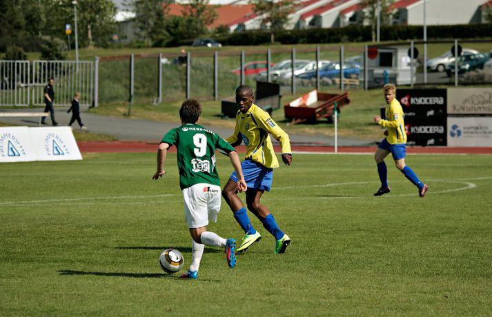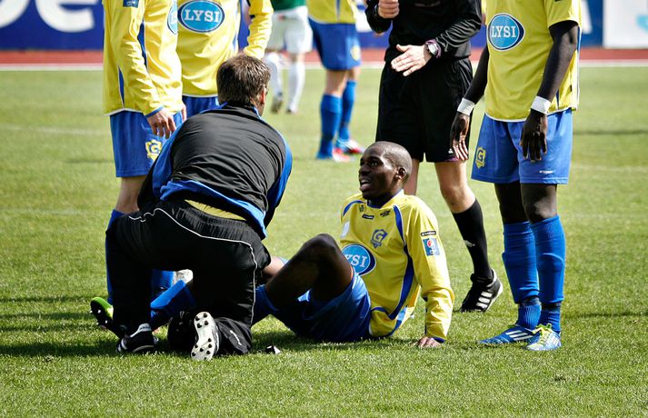 Umfjöllun, viðtöl, einkunnir og myndir: Breiðablik - Grindavík 2-0 Benedikt Bóas Hinriksson á Kópavogsvelli skrifar 15. júní 2012 10:31 Það þarf svo sem ekki að eyða of miklum orðum í þennan leik. Hann var alls ekki góður, sendingar lélegar, tæklingar fáar og lítið um baráttu. Þó voru Blikar alltaf aðeins á undan. Eftir að Ólafur henti sínum varamönnum inná, Guðmundi Péturssyni, Rafn Andra Haraldssyni og Jökli Elísabetarsyni inná varð takturinn meiri og betri. Þeir vildu þrjú stig og fengu þau. Fyrst skoraði Rafn Andri með sinni fyrstu snertingu. Fékk þá góða sendingu frá Kristni Jónssyni og Rafn kláraði vel. Skömmu síðar gulltryggði Guðmundur sigurinn með góðu marki eftir undirbúning Rafn Andra. Grindavíkurliðið var eitthvað bitlaust og andlaust. Margir að biðja um skiptingu í hitanum og margir sem einfaldlega lögðu lítið á sig til að ná í stigin. Þá hélt liðið boltanum aldrei og slíkt er erfitt. Annað. Áhorfendur voru 456. 456 takk fyrir. Það er skelfilegt. Aðstæður voru flottar, gott veður og sól í heiði. Það er skelfilegt hjá Kópavogsbúum að fjölmenna ekki til að styðja sitt lið. Grindvíkingar mættu nokkrir og öskruðu aðeins en betur má ef duga skal. Leikdagar um helgi er greinilega ekki málið - því miður. Ólafur Kristjánsson: Gummi góður„Gummi er góður og hann nýtti þesar 30 mínútur vel," sagði sáttur þjálfari Breiðabliks, Ólafur Kristjánsson eftir leikinn og var þar að tala um Guðmund Pétursson framherja liðsins. „Það þurfti þolinmæði til að klára þennan leik, oft sem þannig dugar við svona tilefni. Mér fannst við stjórna leiknum allan tímann. Það kom smá kafli um miðbik hálfleiks þar sem við misstum smá tökin en heilt yfir held ég að ég hafi talið tvö skot á markið frá Grindavík en öllu fleiri hjá okkur." Ólafur sagði að þetta væri spurning um smekk, hvort leikurinn hafi verið leiðinlegur á að horfa. Ítalskur bragur sagði hann og glotti. „Ég er búinn að lesa um marga leiki frá íþróttafréttamönnum þar sem leikirnir okkar eru sagði hrútleiðinlegir. Að sjálfsögðu var barátta. Liðin voru neðarlega í deildinni og vildu fá þrjú stig. Maður fer ekki úr glansfótbolta í baráttu. Þú ferð úr baráttu og vinnusemi yfir í að spila það sem mönnum finnst skemmtilegt. Mér fannst leikurinn góður af okkar hálfu. Við héldum boltanum ágætlega og vantaði oft herslumuninn að klára færið." Um áhorfendur sagði Ólafur. „Ég hrósa öllum þeim sem mættu." Guðjón Þórðarsson: Grátbáðu um skiptingu leið og illa gekk„Þetta eru mikil vonbrigði því við ætluðum okkur að fá eitthvað út úr þessum leik. Það er búin að vera stígandi í okkar leik undanfarið en hér í dag vorum við aldrei í takt og það vantaði ákefð í okkar menn - því fór sem fór," sagði Guðjón Þórðarsson þjálfari Grindavíkur en hann var brúnaþungur í leikslok. Ekki sáttur við framlag sinna leikmanna og alls ekki við hugarfarið. „Ég veit ekki hvort að menn hafi verið að bíða eftir að einhver annar gerði hlutina, einhver annar tæki af skarið.Það var alltaf verið að bíða og horfa á manninn með boltann. Blikarnir voru að spila og færa og það var stanslaus hreyfing á þeim. Hjá okkur héldum við boltanum aldrei". „Í dag erum við í færi þegar Ondo fékk dauðafæri og McShane í síðari hálfleik. Annað var ekki eins alvarlegt. Menn verða að leggja sig meira fram og við sjáum muninn á viljanum hjá okkur og Blikunum. Það eru menn að biðja um skiptingu, nánast um leið og illa gengur. Það segir sitt um hugarfarið."Ólafur Kristjánsson þjálfari Breiðabliks var í landsfrægu fjólubláu peysunni í dag.DaníelGuðjón Þórðarson þjálfari Grindavíkur.Daníel. Pepsi Max-deild karla Mest lesið „Örugglega nokkrir Fantasy-þjálfarar ósáttir“ Enski boltinn „Haaland er þetta góður“ Enski boltinn Tilþrif 5. umferðar: Jukic stal senunni Körfubolti Kærastan tók eftir því að eitthvað var að Handbolti Lygilega jafnt á toppnum eftir sigur AC Milan Fótbolti „Það verður hundleiðinlegt að spila við Val“ Íslenski boltinn Ítalinn hoppaði upp fyrir Alcaraz eftir sigur í París Sport Uppgjörið: Þýskaland - Ísland 29-31 | Svöruðu skellinum með frábærum sigri Handbolti Ólíkar niðurstöður hjá landsliðsmönnunum Körfubolti Hermann tekinn við Val Íslenski boltinn Fleiri fréttir „Það verður hundleiðinlegt að spila við Val“ Hermann tekinn við Val Fóru nýja leið í ár og auglýstu eftir þjálfara: Tommy Nielsen ráðinn Pablo og Óskar Örn inn í þjálfarateymi Hauka FH-ingar kveðja Kjartan Henry Tölur úr Bestu: Bjartur Bjarmi fór í flestar tæklingar af öllum Gísli semur við Skagamenn Óskar Smári tekur við Stjörnunni Bretinn ráðinn tæknilegur ráðgjafi hjá Val Fram þvertekur fyrir metnaðarleysi og leitar að nýjum þjálfurum Tölur úr Bestu: Hallgrímur Mar bjó til langflest færi „Mjög sáttur með samninginn“ „Hefði séð eftir því alla ævi“ Magnús Már í viðræðum við HK Uppgjörið: Ísland - Norður-Írland 3-0 | Áfram hluti af elítunni Tölur úr Bestu 2025: Klúðraði langflestum dauðafærum í sumar FH bíður með að tilkynna nýjan þjálfara Óskar Hrafn fer ekki fet Birnir frá Akureyri í Garðabæ Hættir með Fram Heimir kynntur til leiks í Árbænum Túfa rekinn frá Val Leyndarmáli ljóstrað upp þegar Heimir og Björn kvöddu Leikmenn kusu Patrick og Guðmund Sjáðu bananabombu Antons Loga og önnur síðustu mörk tímabilsins Uppgjörið: Stjarnan - Breiðablik 2-3 | Stjarnan í Evrópu þrátt fyrir tap „Held að ég geti ekki gert mikið meira“ Uppgjörið: Vestri - KR 1-5 | KR bjargaði sér og sendi Vestra í Lengjudeildina Uppgjörið: ÍA - Afturelding 1-0 | Aftureld