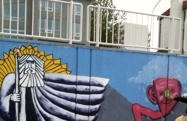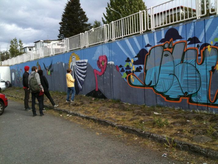 Fegra umhverfið í Kópavogi með veggjalist 15. júní 2012 09:27 Ungmenni í sumarvinnu í Molanum, ungmennahúsi Kópavogs, hafa undanfarna daga fengið útrás fyrir listsköpun sína og málað graffiti myndir á stóran vegg við bílastæðið sunnan við Auðbrekku 6 í Kópavogi. Í tilkynningu frá bænum segir að veggurinn hafi áður verið mikið lýti á umhverfinu en nú sé þar nýtt listaverk að líta dagsins ljós. Frumkvæðið áttu listamenn við Auðbrekku en verkið er styrkt af Kópavogsbæ. „Markmiðið er ekki bara að fegra og lífga upp á svæðið heldur einnig að kenna ungmennum að bera virðingu fyrir umhverfi sínu. Þannig verður veggurinn ekki lengur notaður fyrir ómarkvisst krot heldur er nú að fæðast þar litríkt listaverk sem ætti að vera öllum til sóma," segir ennfremur. Stefnt er að því að verkið verði tilbúið fyrir 17. júní. Þá ætla ungmennin að halda listasýningu og grilla fyrir vini og vandamenn. Mest lesið Flutti til Reykjavíkur í dag Innlent Gabríel á bak við lás og slá fram á föstudag Innlent Drífa Snædal snýr aftur Innlent Þrír í haldi vegna stunguárásar: Gabríel Douane einn grunaðra Innlent Ari Edwald leiðir Miðflokkinn í borginni Innlent Bauluðu á Vance af „evrópsku stolti“ Erlent Þetta eru launin sem frambjóðendur geta vænst með kjöri í vor Innlent Málið mögulega fyrir dómstóla: „Ekkert eðlilegt við það að fá símtal frá stjórnendum“ Innlent „Stuðlabergið er bara komið út í sjó“ Innlent Réttað yfir manni sem er grunaður um að nauðga barni og konu sinni Innlent Fleiri fréttir Tók hálftíma að þróa fullkomna eftirlíkingu af rödd Höllu Rektor Háskólans á Bifröst segir af sér Ný Ölfusárbrú farin að taka á sig mynd „Það er ekkert sem tekur við og enginn sem ber ábyrgð“ Drífa Snædal snýr aftur Goddur jarðsunginn Tifandi tímasprengja, oddviti í beinni og breytt Reynisfjara Handtekin fyrir að beita opinberan starfsmann ofbeldi „Þörfin er gríðarleg“ Gabríel á bak við lás og slá fram á föstudag Blíðan haft áhrif á gróður sem lætur þó ekki plata sig Reiknar með einu gosi í viðbót Flutti til Reykjavíkur í dag Málið mögulega fyrir dómstóla: „Ekkert eðlilegt við það að fá símtal frá stjórnendum“ Réttað yfir manni sem er grunaður um að nauðga barni og konu sinni Saka stjórnendur Bifrastar um að hafa beitt nemendur þrýstingi Saka stjórnendur um að þrýsta á nemendur að styðja rektor Biðla enn til almennings sjö árum eftir hvarf Jóns Þrastar Þorsteinn fær áheyrn Hæstaréttar Ari Edwald leiðir Miðflokkinn í borginni Stjórnarformaðurinn verður forstjóri Reykjalundar Íslenska ríkið ræður lobbýista í Washington Jarðskjálftahrinan við Eldey heldur áfram Þetta eru launin sem frambjóðendur geta vænst með kjöri í vor „Vísun máls til siðanefndar getur ekki talist aðför“ Fjórir handteknir í tengslum við líkamsárásir „Stuðlabergið er bara komið út í sjó“ Þrír í haldi vegna stunguárásar: Gabríel Douane einn grunaðra Í kapphlaupi við tímann: Fær ekki lyf sem gæti breytt og lengt líf hennar Stærsti skjálftinn 3,4 Sjá meira