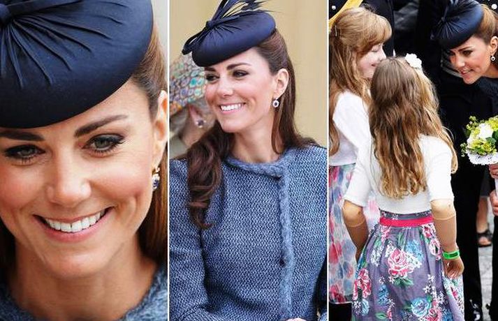 Kate Middleton hertogaynjan af Cambridge, 30 ára, og Elizabeth Bretadrottning mættu bláklæddar á opinbera samkomu í Nottingham í Englandi. Með þeim í för var Vilhjálmur prins glæsilegur að vanda. Ef myndirnar í meðfylgjandi myndasafni eru skoðaðar má greinilega sjá hvað hertogaynjan er með mikla útgeislun við störf.