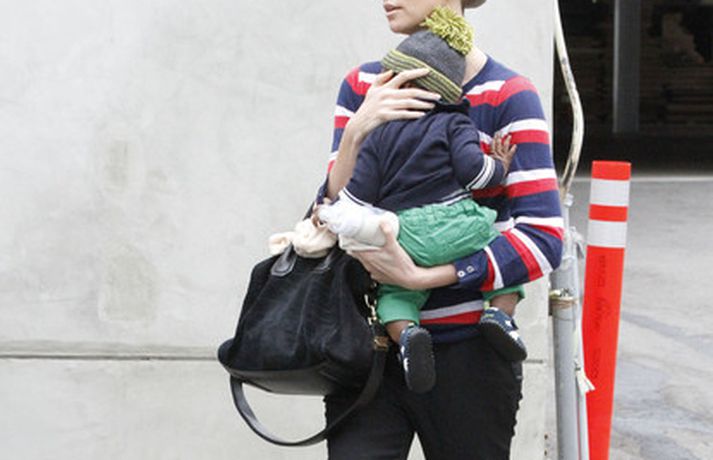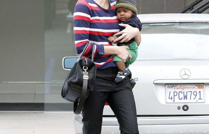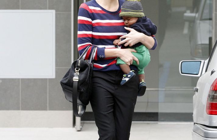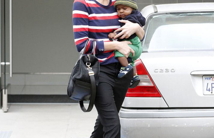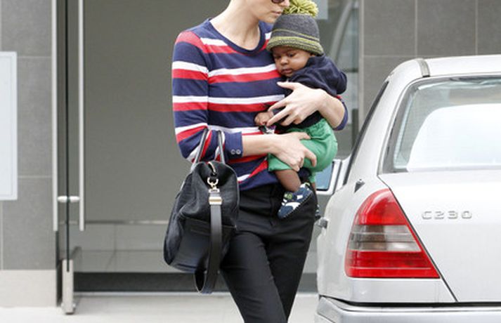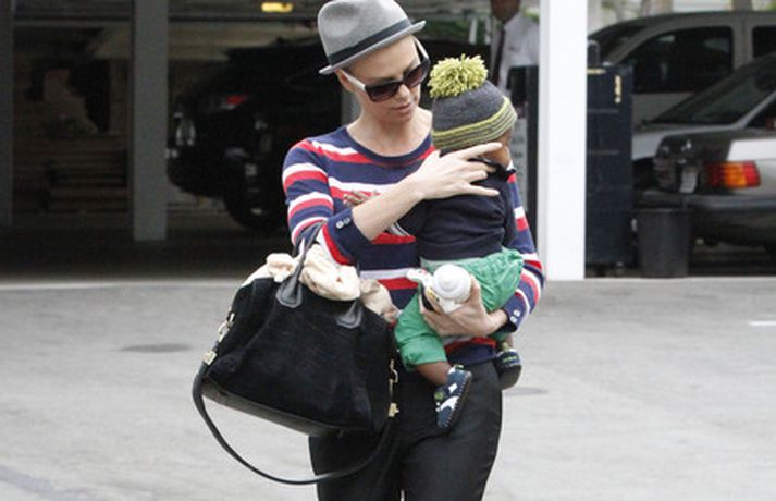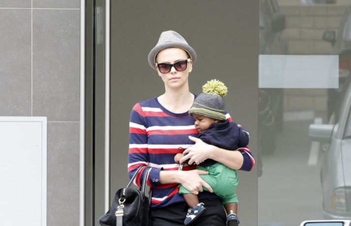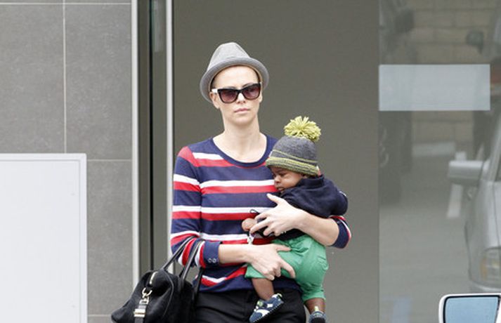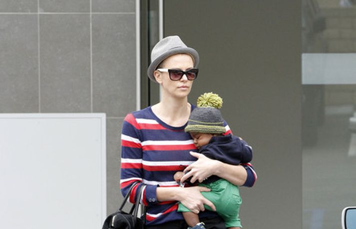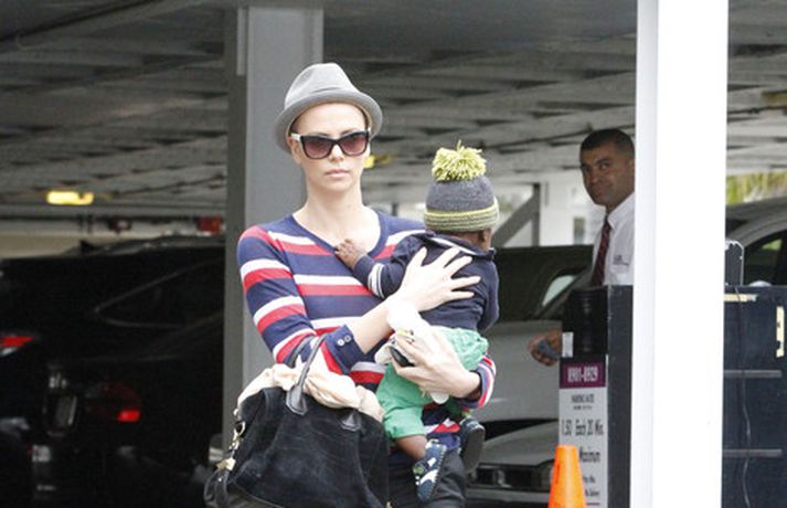 Leikkonan Charlize Theron, 36 ára, hefur látið ljósu lokkana fjúka. Eins og sjá má á myndunum sem teknar voru af henni í Beverly Hills með son sinn í fanginu er leikkonan knallstutthærð. Þrátt fyrir að vera með hatt á höfði og sólgleraugu á nefinu fór ekki á milli mála að hún er stutthærð. Leikkonan er ekki síður glæsileg með stutt hár á því leikur enginn vafi.