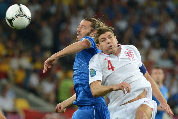 Gerrard vill halda fyrirliðabandinu Kolbeinn Tumi Daðason skrifar 25. júní 2012 22:00 Steven Gerrard, fyrirliði enska landsliðsins í knattspyrnu, segist vilja halda áfram sem fyrirliði. Hann hefur alls ekki í hyggju að leggja landsliðsskóna á hilluna. „Ég elska ábyrgðina og hef notið hverrar mínutu," sagði Gerrard aðspurður um tilfinninguna að gegna fyrirliðahlutverkinu á Evrópumótinu. Gerrard, sem er 32 ára, segist hafa rætt við Roy Hodgson, landsliðsþjálfara Englendinga, sem vilji að hann beri fyrirliðabandið áfram. England féll úr leik í átta liða úrslitum í vítaspyrnukeppni að loknu markalausu jafntefli gegn Ítölum í gær. Gerrard er raunsær varðandi spilamennsku Englendinga á mótinu. „Fótboltinn sem við höfum spilað hefur ekki verið frábær allan tímann. Við höfum ekki gert áhorfendur orðlausa. Það sést best á hve illa gengur að halda boltanum innan liðsins. Sem knattspyrnuþjóð þurfum við að bæta okkur með boltann í sóknarleiknum," sagði Gerrard sem er þó ánægður með framlag leikmanna liðsins. „Allir gáfu allt sem þeir áttu og meira er ekki hægt að biðja um. Ég hef trú á því að stuðningsmenn liðsins séu sammála mér í því að menn hafi spilað með hjartanu," sagði Gerrard. Tengdar fréttir Ítalir í undanúrslit eftir sigur á Englendingum í vítaspyrnukeppni Ítalir komust áfram í undanúrslit Evrópumótsins í knattspyrnu í kvöld eftir magnaðan sigur á Englandi eftir vítaspyrnukeppni. Hvorugu liðinu tókst að skora eftir venjulegan leiktíma og ekkert mark var skorað í framlengingunni. 24. júní 2012 13:29 Mest lesið Ljósmyndari pompaði á rassinn eftir öskur Kane Körfubolti Þriðji Kaninn mættur til bjargar nýliðunum Körfubolti Draumaprinsinn Benoný sendi aðdáendum kveðju Enski boltinn Nýr stjóri Chelsea fékk óskabyrjun Enski boltinn Zidane gat ekki stöðvað för Nígeríu í undanúrslit Fótbolti Hildur lenti í ótrúlegri hakkavél Fótbolti Utan vallar: Dauði knattspyrnustjórans Enski boltinn Stólarnir léku sér að eldinum en fylgja Grindavík í undanúrslit Körfubolti „Of margir lykilleikmenn sem fundu sig ekki í dag“ Handbolti Draumur Villa lifir en eru dagar Franks taldir? Enski boltinn Fleiri fréttir Nýr stjóri Chelsea fékk óskabyrjun Salah sendi Egypta áfram í undanúrslit Hildur lenti í ótrúlegri hakkavél Draumur Villa lifir en eru dagar Franks taldir? Draumaprinsinn Benoný sendi aðdáendum kveðju Zidane gat ekki stöðvað för Nígeríu í undanúrslit Semenyo skoraði eitt af tíu og Hákon hélt hreinu Newcastle áfram eftir bráðabana og mikla dramatík Róbert með þrennu í sigri KR Varði öll þrjú vítin og Sunderland áfram Stoltur af litla bróður eftir sögulegt afrek Benoný tryggði sigurinn á ögurstundu Utandeildarlið henti meisturunum úr keppni Fram lagði Leiknismenn Glódís þarf að sjá á eftir vinkonu Dyche æfur eftir tapið Alfreð aðstoðaði Frey á Spáni Utan vallar: Dauði knattspyrnustjórans Solskjær hittir forráðamenn Man. Utd Hollywood-endir þegar Forest féll úr bikarnum Orri sá sigurmark á síðustu sekúndu Ísabella aftur heim frá sænska stórveldinu Heimamenn slógu Mbeumo og félaga út Landsliðsbræður Palestínu sameinast í Keflavík Tottenham fær brasilískan bakvörð Everton-maðurinn sendi Senegal í undanúrslit Bikarhetjan til KA Amanda mætt aftur „heim“ Þrótti berst mikill liðsstyrkur úr Keflavík Jón Guðni aðstoðar Ólaf Inga Sjá meira
