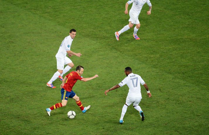 Spánverjar tryggðu sér í kvöld sæti í undanúrslitum EM er þeir unnu sannfærandi 2-0 sigur á slökum Frökkum sem náðu sér aldrei á strik. Spánverjar munu mæta Portúgal í undanúrslitunum. Hér að neðan má sjá skemmtilega myndasyrpu úr leiknum.