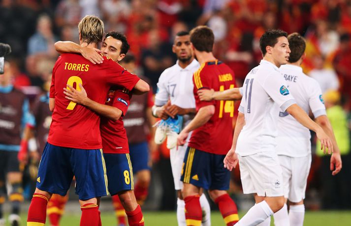 Spánverjar í undanúrslit - myndir 23. júní 2012 23:00 Spánverjar tryggðu sér í kvöld sæti í undanúrslitum EM er þeir unnu sannfærandi 2-0 sigur á slökum Frökkum sem náðu sér aldrei á strik. Spánverjar munu mæta Portúgal í undanúrslitunum. Hér að neðan má sjá skemmtilega myndasyrpu úr leiknum. Mest lesið Nýjar upplýsingar um heilsufar Michaels Schumacher Formúla 1 Heilbrigðisráðherra lætur óvin Íslands heyra það Handbolti Óvinur Íslands: „Aldrei stríða heilu landi“ Handbolti Þetta er ástæða þess að Ísland er í efsta sæti í milliriðlinum Handbolti Dregur til baka ummæli sín um Gísla Þorgeir Handbolti Ótrúleg saga Viggós rifjuð upp í erlendum miðlum Handbolti Ánægðir með stælana í Hauki: „Sagði bara fokkaðu þér“ Handbolti Undanúrslit svo gott sem úr sögunni eftir dramatísk úrslit Handbolti Svíar furðu lostnir og of næs: „Létu pakka sér saman“ Handbolti Segist hafa brugðist gegn Íslandi: „Ég komst aldrei framhjá þeim“ Handbolti Fleiri fréttir Kristall snýr aftur „þroskaðri og fullorðnari“ Sagðir borga 200 milljónir fyrir Kristal Mána Ekki gerst hjá Arsenal í átján ár Sjáðu draumamark Dorgu og öll hin í sigri United á Arsenal Hákon í leikbanni og Lille steinlá á heimavelli Orri sneri aftur eftir meiðsli Varamaðurinn tryggði United sigur gegn Arsenal Sjáðu Yamal skora „besta mark tímabilsins“ Tókst bara að jafna gegn tíu mönnum í toppslagnum Logi skoraði sjálfsmark í sigri Mikael Egill fagnaði endurkomusigri Aston Villa lifði af orrahríð fyrir norðan og náði Manchester City Heiðdís leggur skóna á hilluna Hlín utan hóps er Lehmann kom að marki í fyrsta leik Estevao með mark og stoðsendingu gegn lánlausu Palace liði Ásdís Karen lagði upp í öruggum sigri gegn botnliðinu Sjáðu alla dramatíkina úr enska boltanum Mbappé skaut Real Madrid upp í toppsætið Van Dijk segir að það hafi „klárlega verið brotið á sér“ í sigurmarkinu „Sigurmark undir lokin er fullkomið fyrir okkur“ Liverpool-vandræðin halda áfram og Bournemouth með sigurmark í blálokin Hákon framlengdi við Lille til 2030 Alberti og félögum mistókst að komast upp úr fallsæti Stórbrotið sigurmark hjá Harry Wilson Haaland fékk smá hvíld í kærkomnum sigri City Víkingur og Þróttur mætast í úrslitaleik Reykjavíkurmótsins Bayern tapaði deildarleik í fyrsta sinn á tímabilinu Alfons fer aftur til Hollands Elísa fer frá Val til Breiðabliks Hömruðu meðan járnið var heitt í sigri gegn Sunderland Sjá meira
