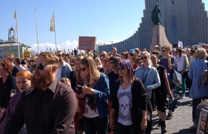 "Samþykki er sexí — Hættið að nauðga!" Kjartan Hreinn Njálsson skrifar 23. júní 2012 14:34 Vel mætt í Druslugönguna. myn/fréttastofa Hundruð tóku þátt í Druslugöngunni sem hófst klukkan tvö í Reykjavík í dag. Gengið var frá Hallgrímskirkju, niður Skólavörðustíg að Lækjartorgi. Mikil stemning var á Skólavörðustígnum. Margir báru skilti og hrópuðu slagorð. „Samþykki er sexí — Hættið að nauðga," hrópaði fjöldinn. Þetta er í annað sinn sem gangan er farin en nokkrar breytingar voru á göngunni í ár. Yfirskrift hennar að þessu sinni er Meint-Drusluganga en það er gert til að þess að vekja fólk til umhugsunar um þá stöðu sem þolendur upplifa þegar fyrirvari er settur á frásagnir þeirra. Tilgangur Druslugöngunnar er að færa ábyrgð kynferðisglæpa frá fórnarlömbunum og yfir á gerendur. Hægt er að nálgast upplýsingar um gönguna hér. Mest lesið Segir hernum að undirbúa árás á Nígeríu Erlent Margir sagðir særðir eftir árás í Cambridge-skíri Erlent Keypti stól í Góða hirðinum sem reyndist fágætur gripur Innlent Nokkrar milljónir horfnar á örfáum vikum Innlent Stúlka fannst á lífi í kassa í órafjarlægð frá heimili sínu Erlent Getur gervigreindarsmjaður leitt til gervigreindargeðrofs? Innlent Kosningahugur í eigendum frístundahúsa Innlent Óttast að námsbraut verði undir verði af frumvarpinu Innlent Rændur fyrir utan Costco um hábjartan dag Innlent Kúgaðist og öskurgrét yfir lýsingum sonarins Innlent Fleiri fréttir Kosningahugur í eigendum frístundahúsa Keypti stól í Góða hirðinum sem reyndist fágætur gripur Getur gervigreindarsmjaður leitt til gervigreindargeðrofs? Söguleg óvissa á fasteignamarkaði og meðvirk gervigreind Óttast að námsbraut verði undir verði af frumvarpinu Kostnaður við stjórnsýslu borgarinnar mun hærri en landsmeðaltalið Tveir fá heilablóðfall á hverjum degi á Íslandi Breytingar sem litlu breyta og mokstursmenn þakka veðurguðunum Líta eigi á eignir landsbyggðafólks í Reykjavík sem sumarbústaði Sendi síðasta bréfið degi áður en fellibylurinn gekk yfir Borgin tekur út framkvæmdir við Vesturbæjarlaug Nokkrar milljónir horfnar á örfáum vikum Tilkynnt um bíl fullan af flugeldum Valhöll auglýst til sölu Rændur fyrir utan Costco um hábjartan dag Handtóku menn á tvítugsaldri vegna stórfelldrar fölsunar rafrænna skilríkja „Þetta er búið að ræna okkur innri ró“ Reiði meðal lögreglumanna Lögreglan vill ná tali af þessu fólki Lögreglustjóri situr sem fastast og spáin gerir krökkunum grikk Vonast til að geta bjargað föstum hnúfubak í fyrramálið Fagnar komu Dags um borð í evrubátinn Nær öllu innanlandsflugi aflýst Kúgaðist og öskurgrét yfir lýsingum sonarins Seðlabankinn rýmkar lánþegaskilyrði Mannekla hafi mikil áhrif á fangaverði Ástandið verði gjörbreytt í fyrramálið Íhugar ekki stöðu sína Þau sóttu um stöðu forstöðumanns Stafrænnar heilsu Hefði aldrei giskað á uppsagnir á hennar deild Sjá meira