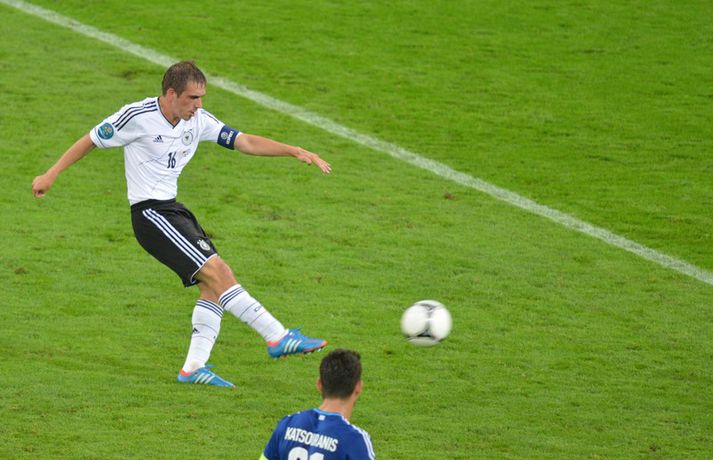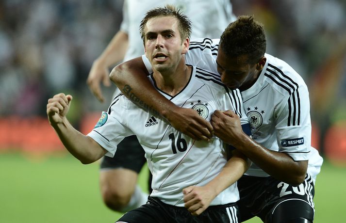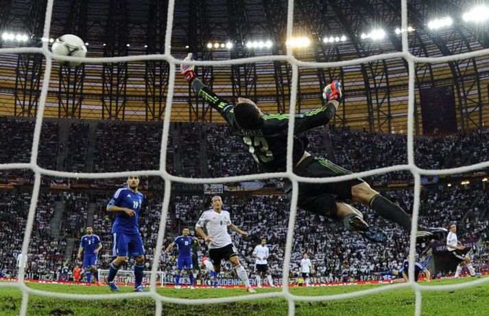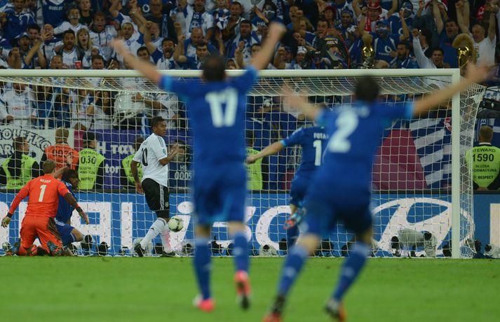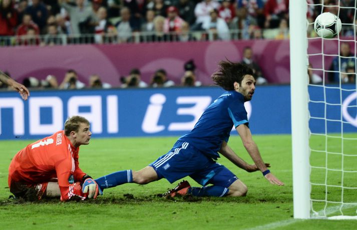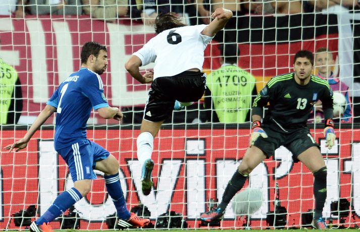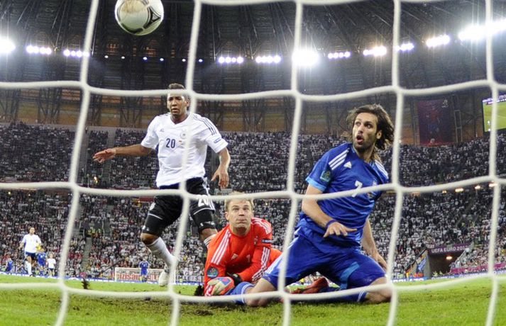Þjóðverjar skoruðu fjögur mörk í sannfærandi sigri á Grikkjum Óskar Ófeigur Jónsson skrifar 22. júní 2012 18:15 Mynd/AFP Þjóðverjar eru komnir í undanúrslitin á EM í fótbolta eftir sannfærandi 4-2 sigur á Grikkjum í átta liða úrslitum í kvöld. Joachim Löw, þjálfari þýska liðsins, skipti um sóknarlínu hjá þýska liðinu og tveir af nýju framherjunum. Miroslav Klose og Marco Reus, skoruðu í leiknum. Hin mörkin gerðu fyrirliðinn Philipp Lahm og miðjumaðurinn Sami Khedira. Þjóðverjar mæta annaðhvort Englandi eða Ítalíu í undanúrslitunum en þær þjóðir mætast í átta liða úrslitunum á sunnudagskvöldið. Þjóðverjar höfðu mikla yfirburði í þessum leik en urðu fyrir smá áfalli þegar Grikkjum tókst að jafna gegn gangi leiksins eftir tíu mínútna leik í seinni hálfleik. Þjóðverjar svöruðu með tveimur mörkum á þrettán mínútum og unnu að lokum mjög öruggan og sannfærandi sigur. Joachim Löw, þjálfari Þjóðverja, ákvað að hvíla stórstjörnurnar Lukas Podolski, Thomas Müller og Mario Gomez í leiknum en sá síðastnefndi er markahæsti leikmaður keppninnar með þrjú mörk ásamt Króatanum Mario Mandzukic, Rússanum Alan Dzagoev og Cristiano Ronaldo frá Portúgal.Miroslav Klose, Andre Schurrle og Marco Reus byrjuðu því í fremstu víglínu Þjóðverja. Miroslav Klose setti boltann í markið eftir fjórar mínútur þegar hann fylgdi eftir skoti Sami Khedira en markið var dæmt af vegna rangstöðu. Þjóðverjar voru með öll völd á vellinum frá byrjun og um miðjan hálfleikinn fengu þeir þrjú góð færi á stuttum tíma þar sem Marco Reus var í aðalhlutverki í öll skiptin. Markið lét þó bíða aðeins eftir sér. Andre Schurrle og Sami Khedira voru líka búnir að fá færi þegar fyrirliðinn Philipp Lahm kom þýska liðinu í 1-0 á 39. mínútu með frábæru langskoti af 22 metra færi. Þjóðverjar héldu áfram stórsókn sinni eftir markið en Grikkir héldu út fram í hálfleik. Þjóðverjar byrjuðu seinni hálfleikinn af krafti en urðu síðan fyrir smá áfalli á 55. mínútu þegar Georgios Samaras jafnaði leikinn fyrir Grikki eftir skyndisókn og sendingu frá Dimitrios Salpingidis. Þýska liðið tók sér þó ekki langan tíma að komast aftur yfir í leiknum því Sami Khedira skoraði á 61. mínútu eftir fyrirgjöf frá Jérome Boateng. Miroslav Klose fór síðan langt með að tryggja Þjóðverjum sigurinn þegar hann skoraði með skalla á 68. mínútu eftir fyrirgjöf frá Mesut Özil. Þetta var 64. mark Klose fyrir þýska landsliðið. Marco Reus fékk tækifærið í byrjunarliðinu og átti mjög flottan leik. Hann kórónaði leikinn sinn með því að koma þýska liðinu í 4-1 á 74. mínútu þegar hann fylgdi á eftir, með glæsilegu skoti í slánna og inn, eftir að Michail Sifakis varði frá Miroslav Klose. Grikkirnir náðu að minnka muninn mínútu fyrir leikslok þegar Jérome Boateng fékk dæmda á sig hendi í teignum og Dimitrios Salpingidis skoraði af öryggi úr vítaspyrnunni. Mest lesið Hafþór Júlíus keppir á „Steraleikunum“ Sport Arsenal með sex stiga forskot eftir blautan slag Enski boltinn Víkingar fundu nýtt nafn á íþróttasvæði sitt í Safamýri Sport Svekktur að fá ekki leyfi til að taka við ÍBV Íslenski boltinn Tvenna frá Sesko dugði United skammt Enski boltinn Feginn að vera fluttur heim úr fátækrahverfinu í Kína Íslenski boltinn Sjáðu lætin í lokin: „Þetta var algjörlega til skammar“ Enski boltinn Alfreð hættur hjá Breiðabliki Íslenski boltinn Hversu lengi þolir Liverpool-fólk þennan hundleiðinlega fótbolta? Enski boltinn Uppgjörið: ÍA - Grindavík 91-94 | Toppliðið heldur áfram eftir háspennu Körfubolti Fleiri fréttir „Gabi vildi ekki gera honum neitt slæmt“ Sjáðu lætin í lokin: „Þetta var algjörlega til skammar“ Mikael krækti í víti og var grátlega nærri sigri á Milan Arsenal með sex stiga forskot eftir blautan slag Real bjó til El Clásico úrslitaleik PSG bætti við titli eftir vító og hádramatík Lið Arsenal og Liverpool: Enginn Ekitike í stórleiknum Snjóbylur gæti lengt jólafrí liða í þýska boltanum Kudus bætir gráu ofan á svart Birta eltir ástina og semur við Genoa Júlíus Mar seldur til Kristiansund Fyrirliði Tottenham virtist ásaka stjórnendur félagsins um lygar Vandræðalegt víti: „Hvað var þetta?“ Sakfelldur fyrir að framleiða barnaníðsefni en fer ekki í fangelsi „Við erum meistarar, ekki þeir“ Nýfæddur sonur Stefáns Teits tefur félagaskiptin Bæði Blikaliðin fá sánuklefa fyrir komandi tímabil Andrea til Anderlecht Mourinho vonaði að leikmenn hans ættu svefnlausa nótt Hversu lengi þolir Liverpool-fólk þennan hundleiðinlega fótbolta? Tækifæri fyrir Fanneyju eftir að Häcken lánaði markvörðinn til Liverpool Sagði að það hefði verið heimskulegt hjá sér að drekka úr Arsenal-bolla Sjáðu rauðu spjöld Everton: Einn fyrir hártog en hinn fyrir klapp Sjáðu sögulega seint sigurmark og Manchester-liðin missa frá sér sigra Feginn að vera fluttur heim úr fátækrahverfinu í Kína Útför Åge Hareide fer fram í dag Manchester United bað Fletcher um að stýra liðinu í bikarnum Svekktur að fá ekki leyfi til að taka við ÍBV Guardiola pirraður: „Við vorum frábærir í vörn og sókn“ Magnaður sigur Newcastle eftir tvö í uppbótartíma Sjá meira