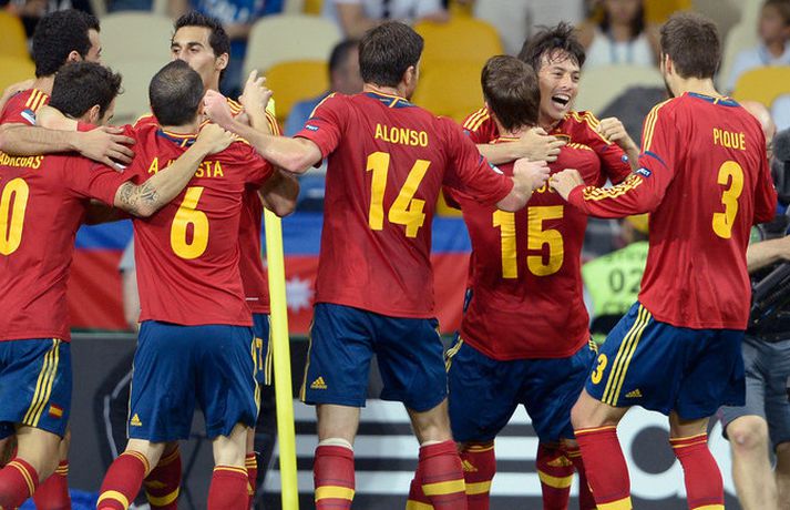 Umfjöllun: Spánn - Ítalía 4-0 | Spánn Evrópumeistari Guðmundur Marinó Ingvarsson skrifar 1. júlí 2012 13:38 Nordicphotos/Getty Spánn sigraði Ítalíu 4-0 í úrslitaleik Evrópumeistaramótsins í kvöld og varð þar með fyrsta þjóðin til að vinna tvö Evrópumeistaramót í röð. Spánn sýndi allar sínar bestu hliðar í leiknum og var 2-0 yfir í hálfleik. Spánverjar hófu leikinn af miklum krafti og voru mjög beinskeyttir strax í byrjun. David Silva skoraði á 14. mínútu og áður en fyrri hálfleikur var allur hafði Jordi Alba bætt við marki. Hafi Ítalía átt einhverja von hvarf hún þegar varamaðurinn Thiago Motta þurfti að fara meiddur af leikvelli þegar enn var um hálftími eftir af leiknum en þá höfðu Ítalir notað allar þrjár skiptingar sínar. Fernando Torres og Juan Mata, leikmenn Chelsea á Englandi, gerðu út um leikinn með tveimur mörkum á fjögurra mínútna kafla þegar skammt var eftir og gulltryggðu sanngjarnan sigur. Spánn skoraði tólf mörk og fékk á sig eitt í keppninni. Ítalía skoraði gegn Spáni í fyrstu umferð en eftir það hélt Casillas markinu hreinu. Ótrúlegir yfirburðir Spánar í mótinu fengust staðfestir með þessum stórsigri í úrslitaleiknum. Ljóst er að Spánn hefur á að skipa besta liði Evrópu aðra keppnina í röð. Liðið hefur nú unnið þrjú stórmót í röð.88. mín. Chelsea félagarnir Torres og Mata að koma Spáni í 4-0. Torres sýndi ótrúlega óeigingirni að senda boltann á Mata sem var í betra færi en Mata var nýkominn inná sem varamaður. 84. mín. Fernando Torres er fyrsti leikmaðurinn til að skora í tveimur úrslitaleikjum EM í röð. Hann var að gulltryggja sigur Spánar með laglegri afgreiðslu eftir sendingu Xavi sem var að leggja upp sitt annað mark í keppninni, bæði í úrslitaleiknum. 62. mín. Enn syrtir í álinn hjá Ítölum því Thiago Motta þurfti að fara meiddur af leikvelli aðeins fimm mínútum eftir að hann kom inná sem varamaður en hann var þriðja og síðasta skiptin Ítalíu í leiknum. Ítalir verða því einum færri það sem eftir lifir leiks ef Motta getur ekki komið aftur inná. 48. mín. Spánn byrjar seinni hálfleikinn af krafti og munaði minnstu að liðið kæmist í 3-0. Það bendir ekkert til þess að Spánn ætli að hanga á forystunni. 41. mín. Spánverjar eru að undirstrika að þeir séu besta lið í heimi strax í fyrri hálfleik. Jordi Alba að skora annað mark Spánar sem eru að yfirspila Ítalíu. Xavi átti frábæra stungusendingu á bakvörðinn sem var kominn fremstur og kláraði færið eins og margreyndur framherji. 29. mín. Fyrsta færi Ítala. Cassano með skot sem fer beint á Casillas.25. mín Spánverjar enn sterkari aðilinn í leiknum og eru mjög beinskeyttir í sínum aðgerðum þó Ítalir séu að komast aðeins meira inn í leikinn.15. mín Spánverjar komast sanngjarnt yfir. Cesc Fabregas lék upp að endalínunni hægra megin í vítateignu, sendi boltann fyrir markið þangað sem David Silva var mættur og stangaði boltann í markið. Frábært mark og Evrópumeistararnir komnir yfir.5. mín Spánverjar miklu sterkari aðilinn fyrstu mínúturnar. Spánverjar og Ítalir mættust í riðlakeppninni og skildu jöfn 1-1. Spánverjar eiga Evrópumeistaratitil að verja og gætu orðið fyrsta þjóðin til að verja titil sinn. Hér fyrir neðan birtast sjálfkrafa allar helstu upplýsingar um framvindu leiksins sem og leikmannahópa liðanna. Tengdar fréttir Torres fær gullskóinn Fernando Torres varð markakóngur Evrópumeistaramótsins í Póllandi og Úkraínu með þrjú mörk en hann skoraði þriðja mark Spánar gegn Ítalíu í kvöld eftir að hafa komið inná sem varamaður. Torres lagði auk þess fjórða markið upp sem Juan Mata skoraði. 1. júlí 2012 21:40 Del Bosque: Ætlaði ekki að vera sigursæli þjálfarinn Vicente Del Bosque, landsliðsþjálfari Spánverja, var hógværðin uppmáluð eins og venjulega í leikslok þrátt fyrir að Spánn hefði skráð sig á spjöld knattspyrnusögunnar á fleiri enn einn hátt. 1. júlí 2012 22:18 Del Bosque jafnaði afrek Helmut Schön Vicente del Bosque þjálfari Spánar er fyrsti þjálfarinn til að stýra liði til sigurs á Evrópumeistaramóti og Heimsmeistaramóti frá því að Helmut Schön afrekaði það með Vestur-Þýskalandi á EM 1972 og HM 1976. 1. júlí 2012 21:45 Mest lesið Þegar Dagur féll á lyfjaprófi: „Var með magasár í hálft ár“ Handbolti „Eftir síðasta mót sögðu þeir bara strax að þeir vildu fá Ísland“ Handbolti Solskjær ekki lengur líklegastur Enski boltinn Bruno Fernandes hakkaður í gærkvöldi Enski boltinn Mætir Liverpool en fær gæsahúð þegar hann heyrir „You'll Never Walk Alone“ Enski boltinn Sjáðu magnaða vörslu hins 43 ára Gordon: „Ein mín besta á ferlinum“ Fótbolti Guðjón Valur fær Garðar til Gummersbach Handbolti Snýr aftur til Íslands og tekur við ÍBV Íslenski boltinn „Mjög hentugt að fá viku til að koma honum inn í hlutina“ Körfubolti Meistaraþjálfari danska landsliðsins segist hafa breytt um stíl Handbolti Fleiri fréttir Katarar vilja halda fyrsta HM félagsliða hjá konunum Mátti ekki koma inn á vegna þess að hún var með eyrnalokk Hannover staðfestir kaupin á Stefáni Teiti Sjáðu magnaða vörslu hins 43 ára Gordon: „Ein mín besta á ferlinum“ Fæstir leikir hjá Man Utd síðan í fyrri heimsstyrjöld Enn einn Bliki kveður Kópavoginn: Áslaug Munda semur við Parma Snýr aftur til Íslands og tekur við ÍBV Mætir Liverpool en fær gæsahúð þegar hann heyrir „You'll Never Walk Alone“ Carrick nú talinn líklegastur til að taka við Man Utd „Myndum að sjálfsögðu taka honum opnum örmum“ Mikel Arteta hrósaði Arne Slot Bruno Fernandes hakkaður í gærkvöldi Dagskráin í dag: Liverpool í bikarnum og síðasta lausa sætið í NFL Solskj